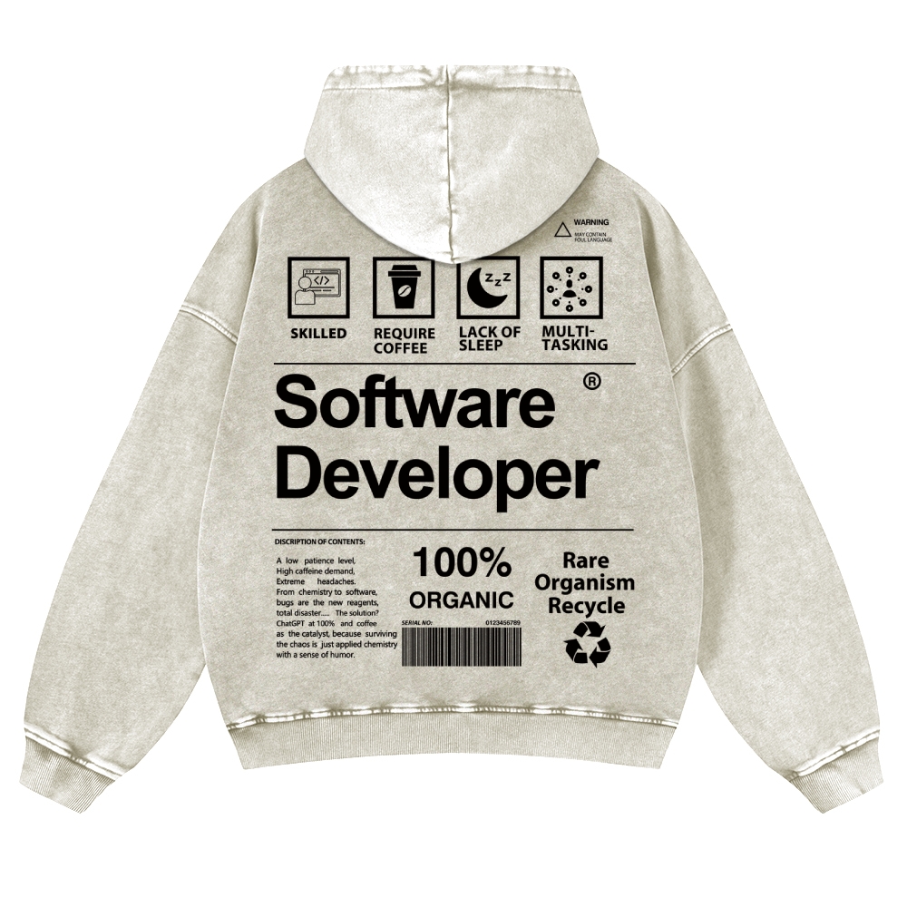 Software Developer Unisex Fit Vintage Washed Hoodie