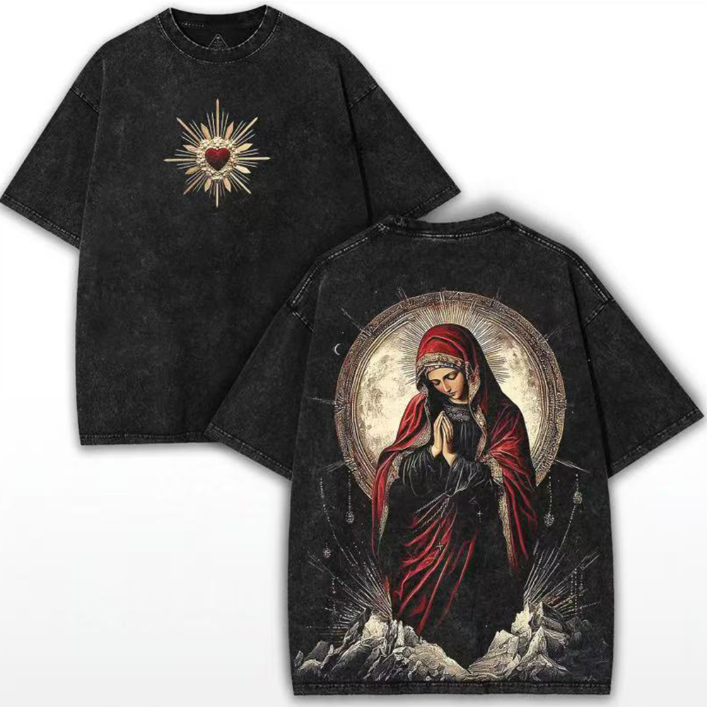 Unisex Holy Mary Washed Cotton Zipper Hooded Sweatshirt