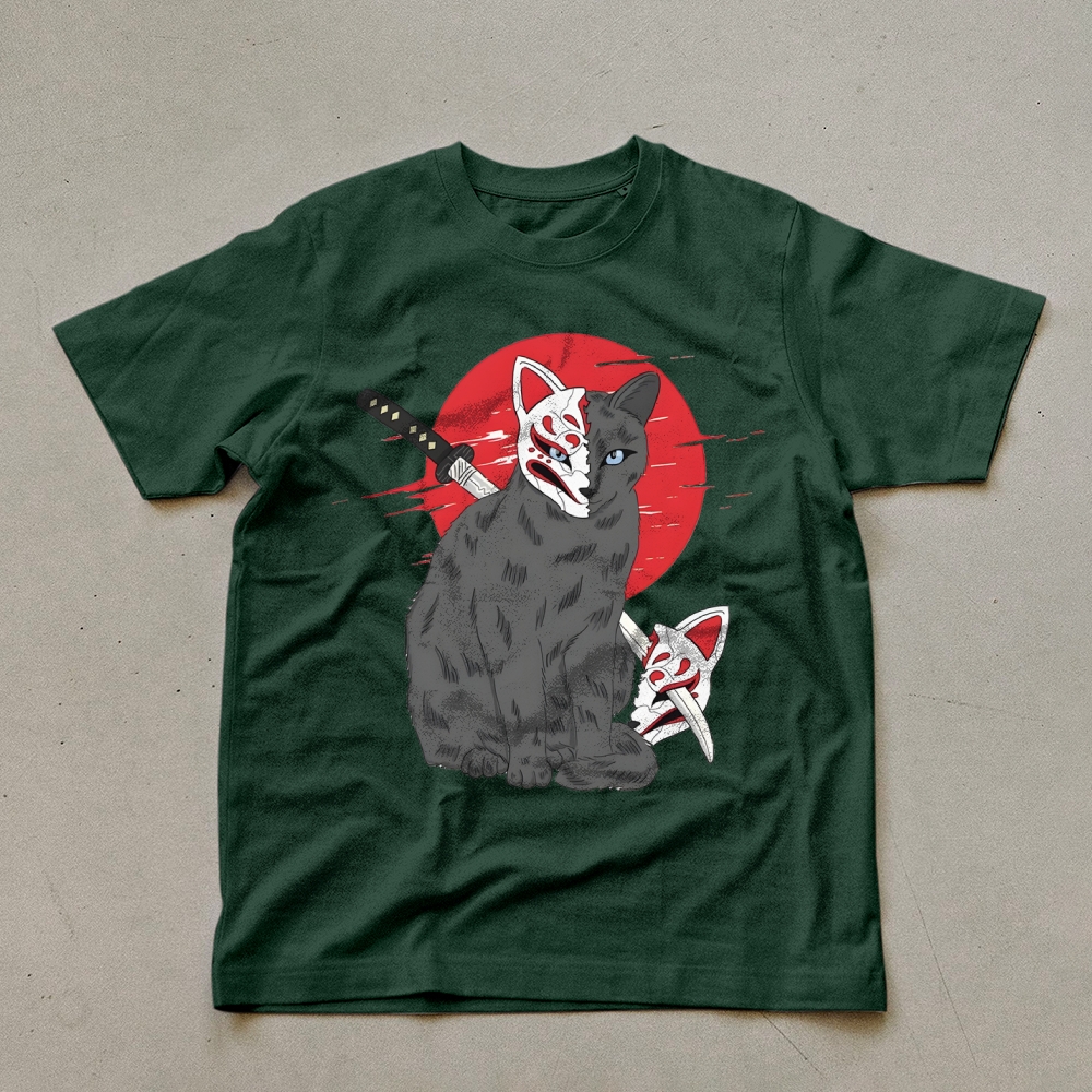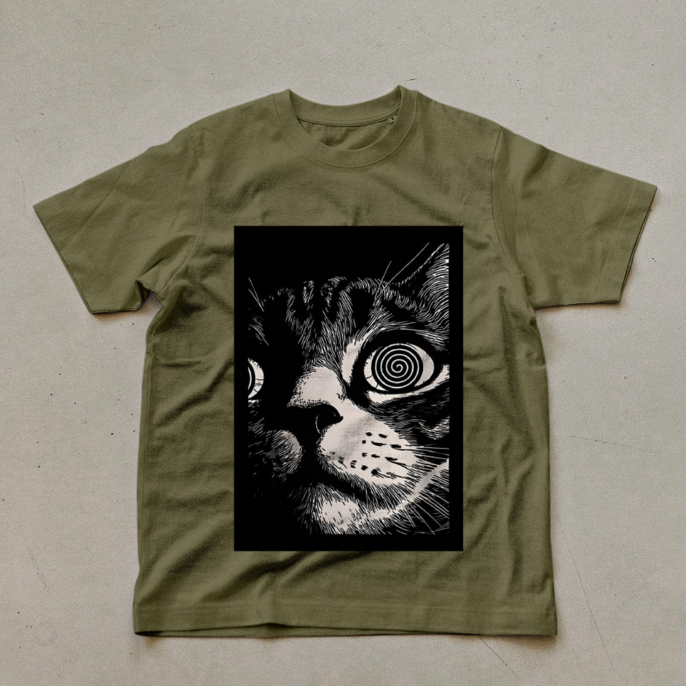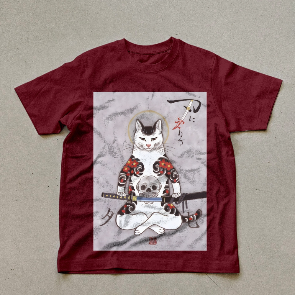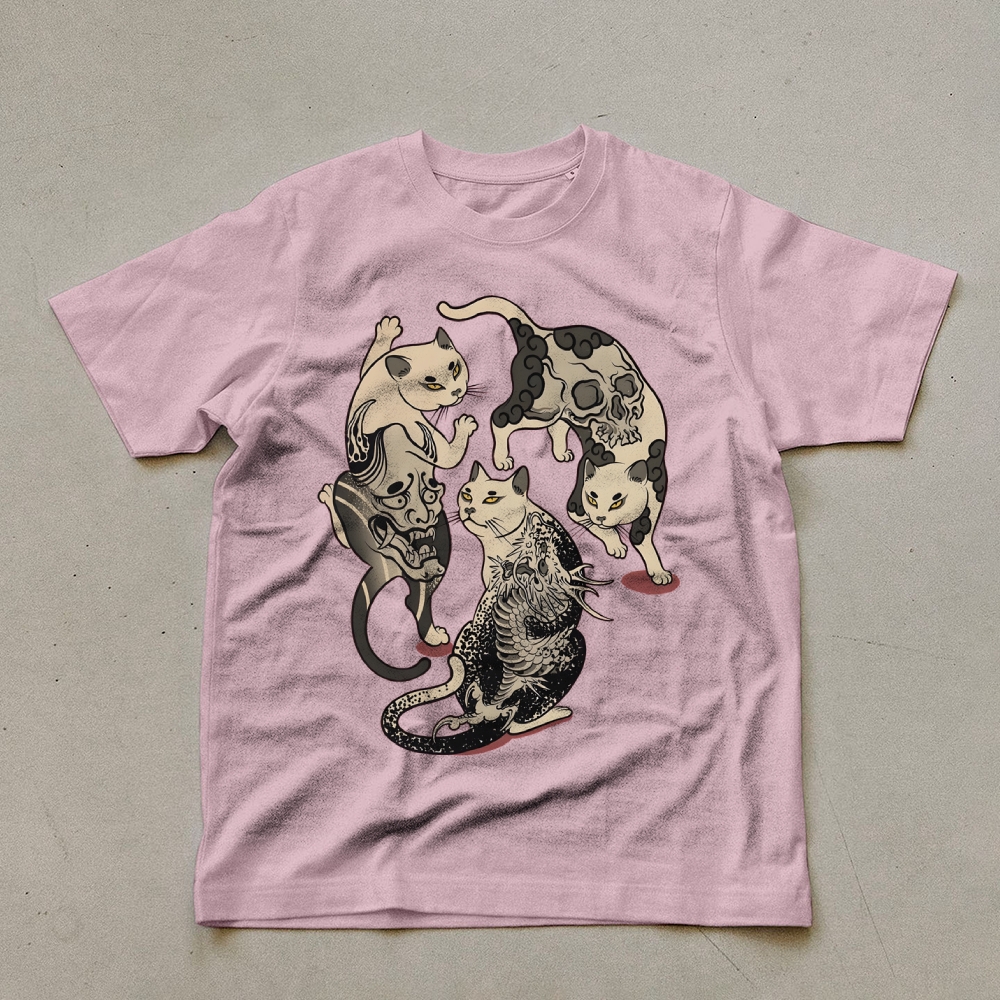 Three Scary Tattoo Cats Unisex Prints T-Shirt
