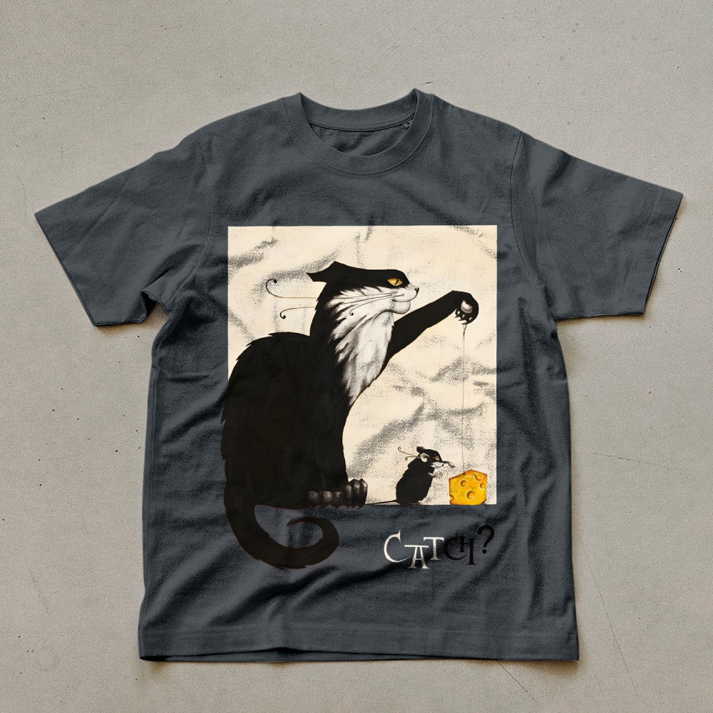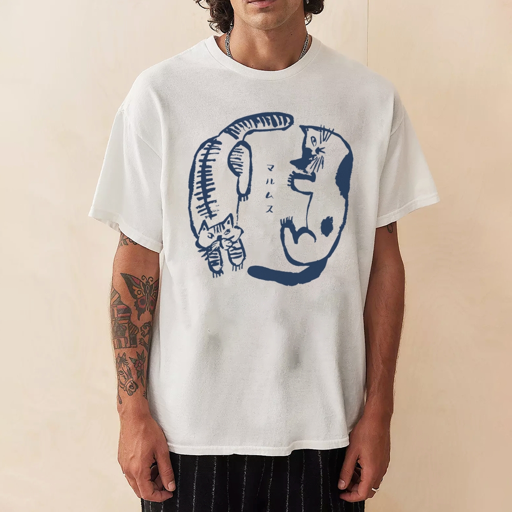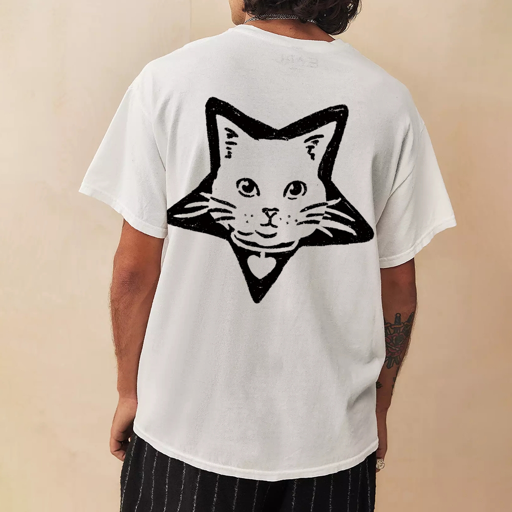 Casual Cat Jenga Pattern Unisex Prints T-Shirt