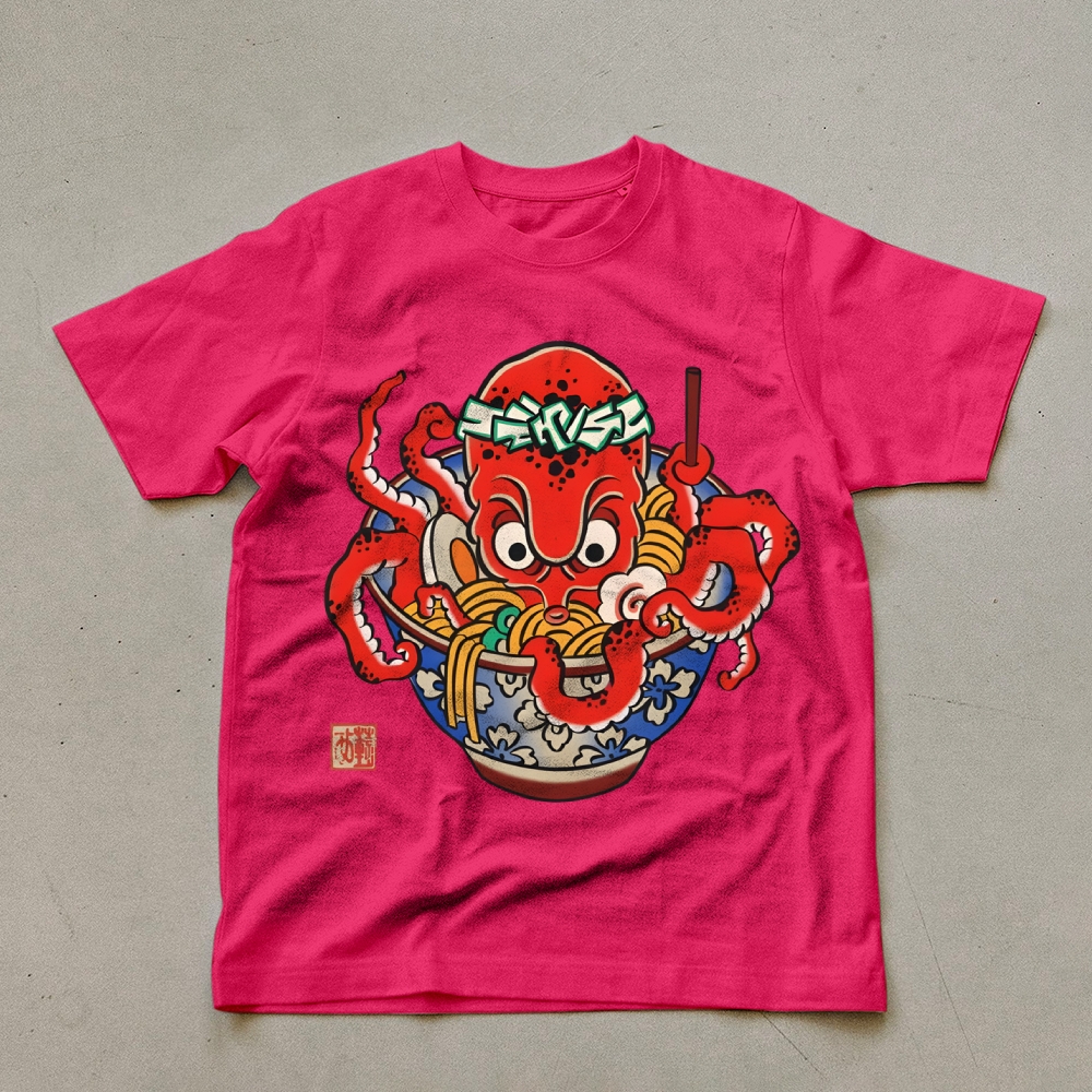 Fresh Octopus Ramen Pattern Unisex Prints T-Shirt