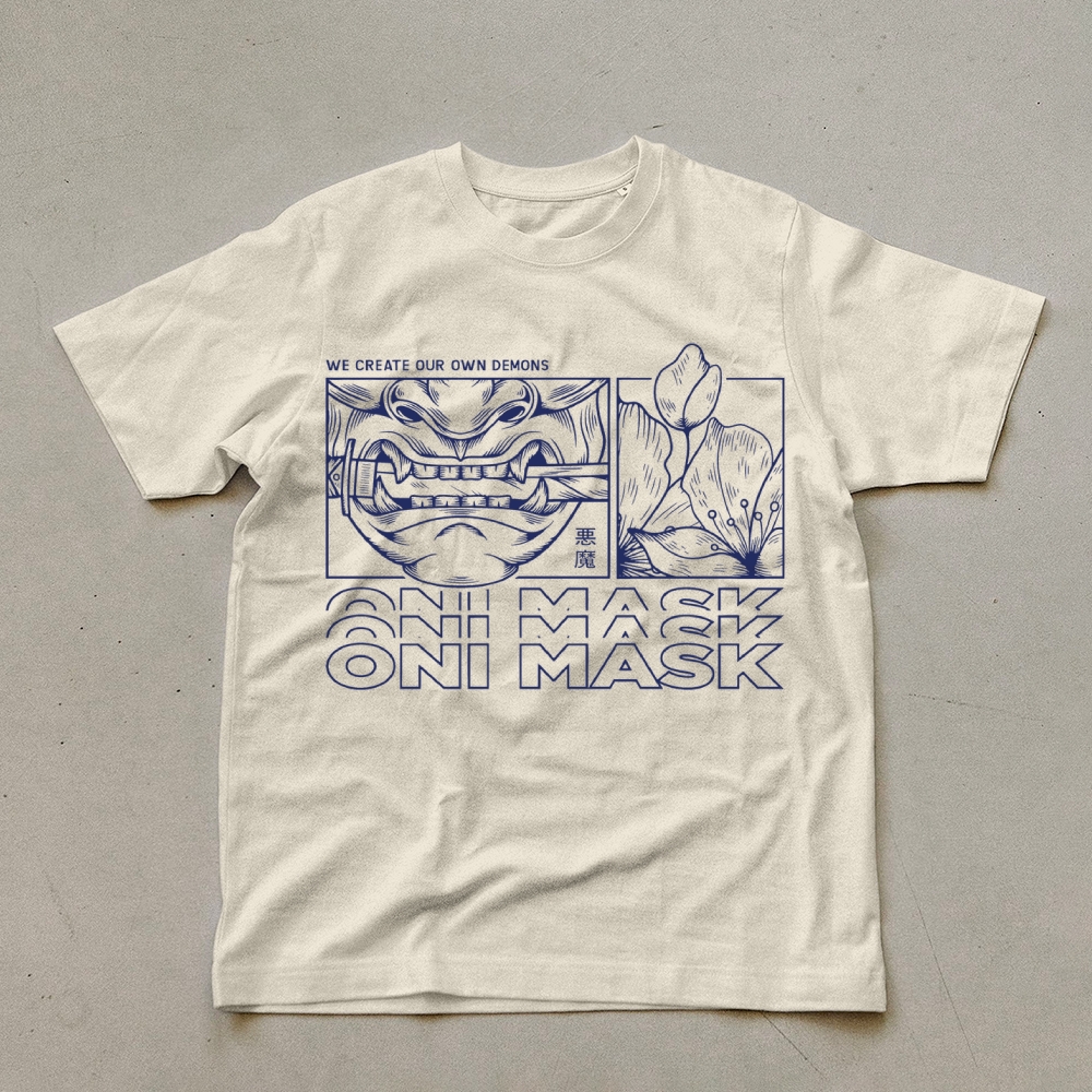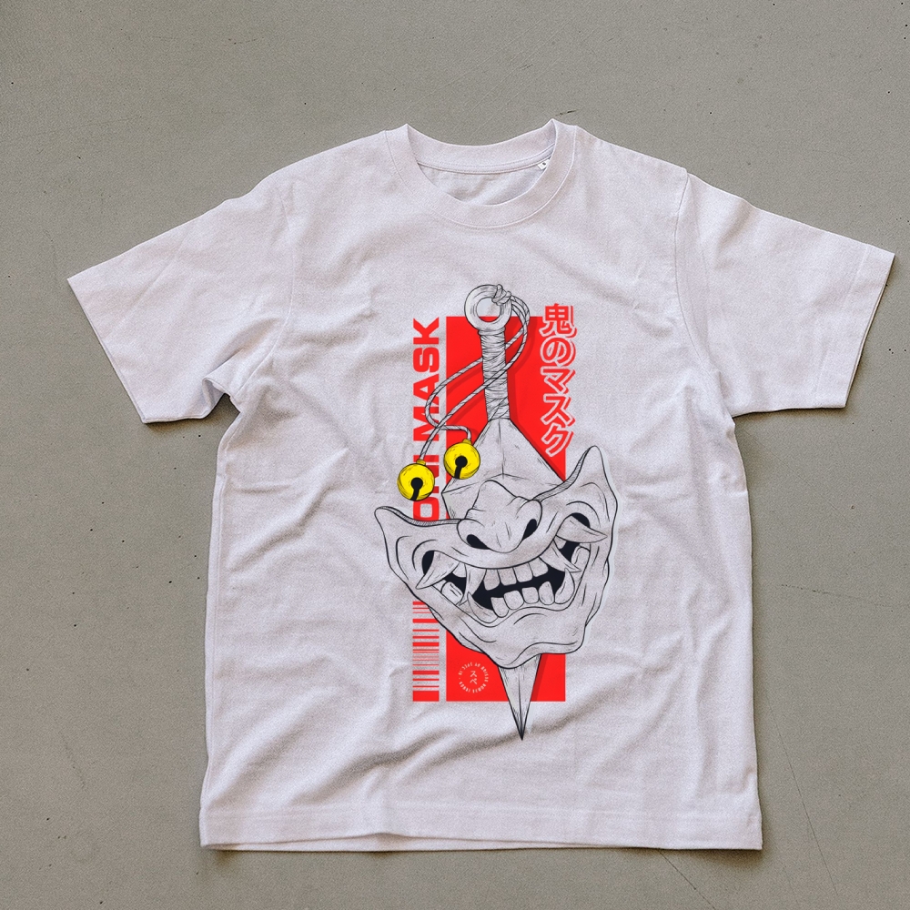 Japanese Devil Mask Pattern Unisex Prints T-Shirt