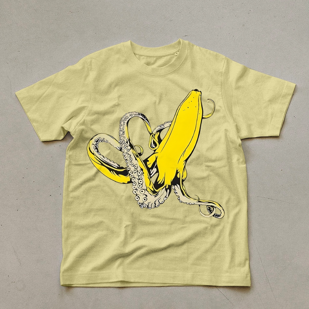 Abstract Banana Octopus Pattern Unisex Prints T-Shirt