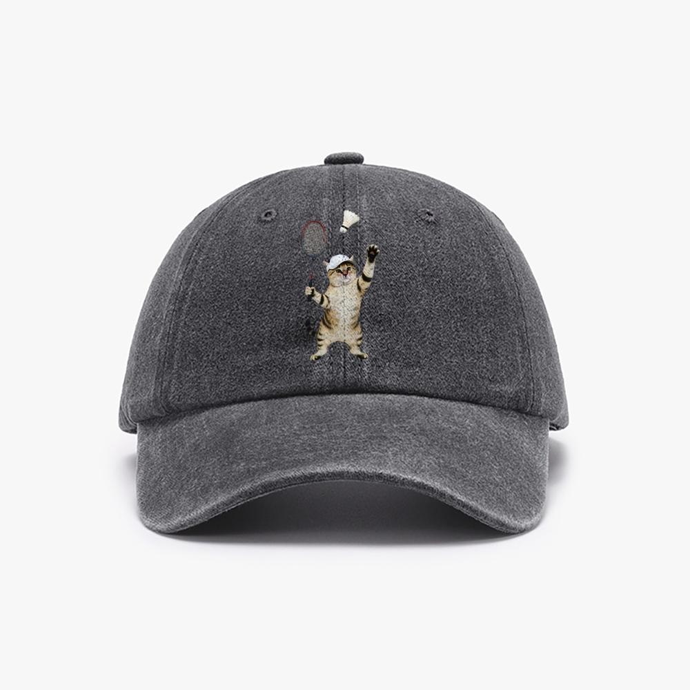 Badminton Player Cat Unisex Washed Vintage Baseball Cap