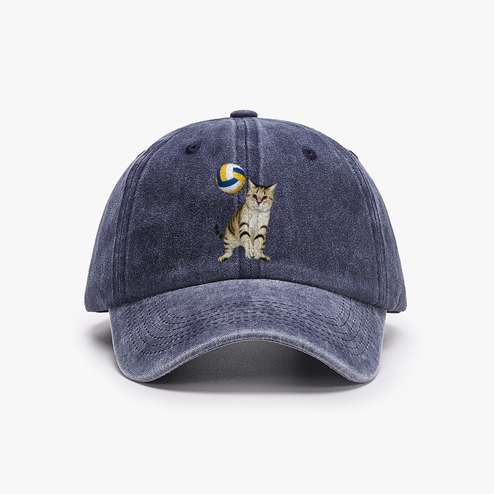 Volleyball Player Cat Unisex Washed Vintage Baseball Cap