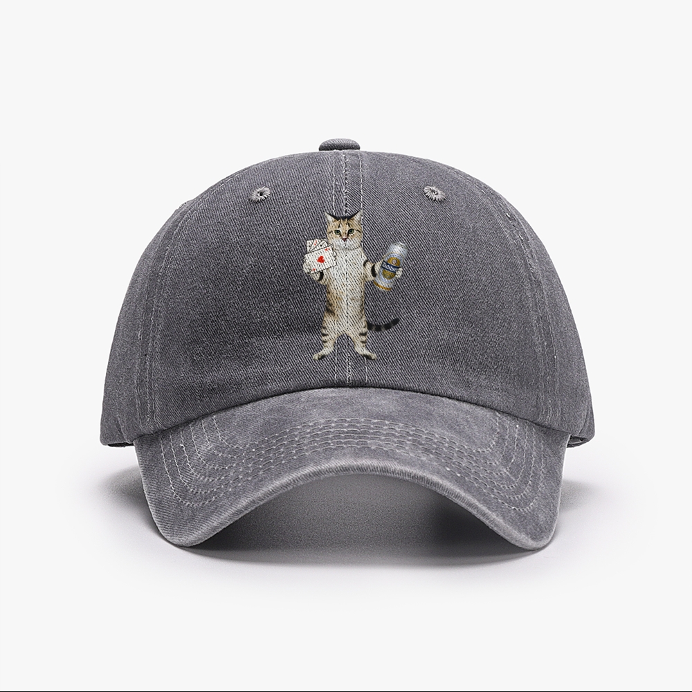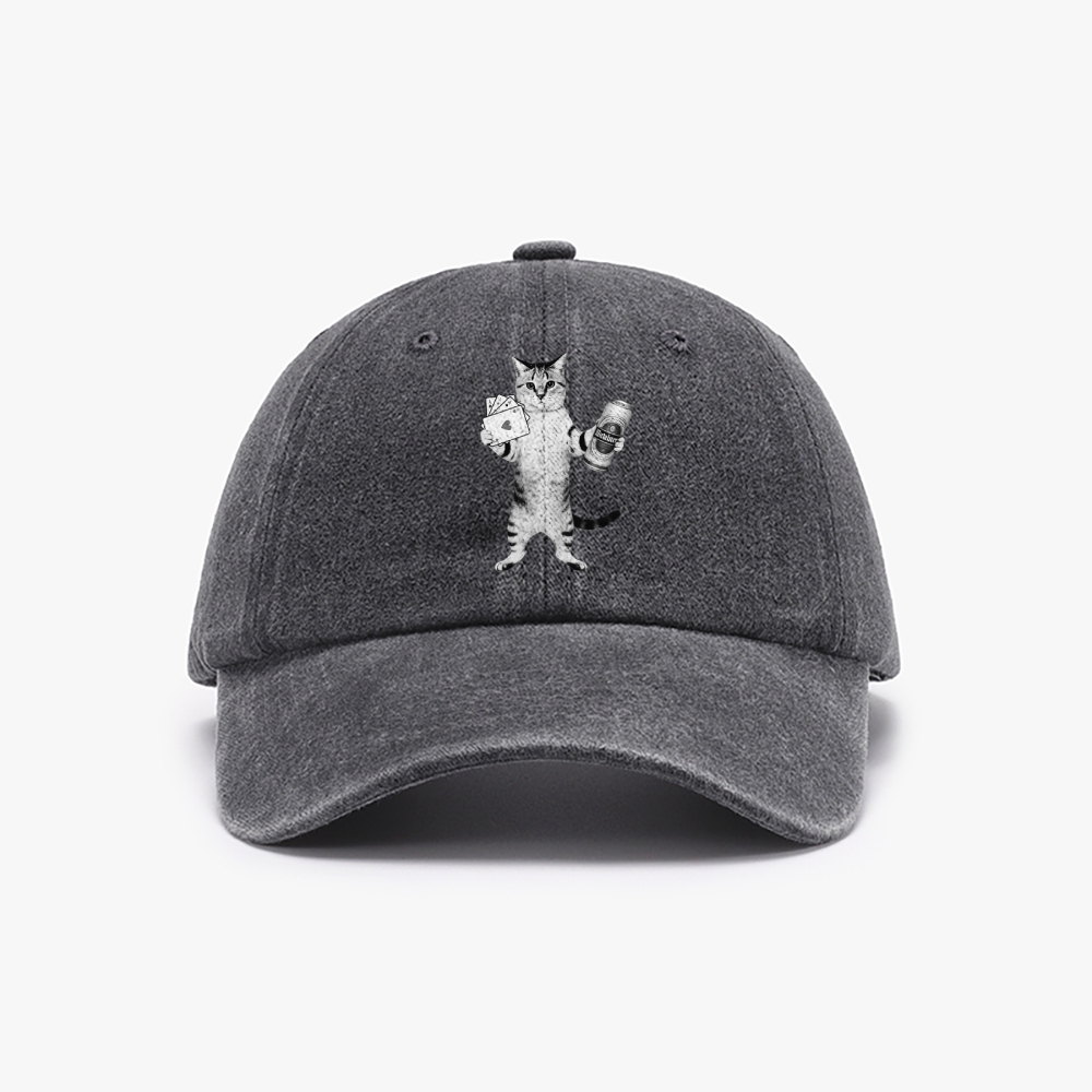 Poker & Beer Cat Juice Head Unisex Washed Vintage Baseball Cap