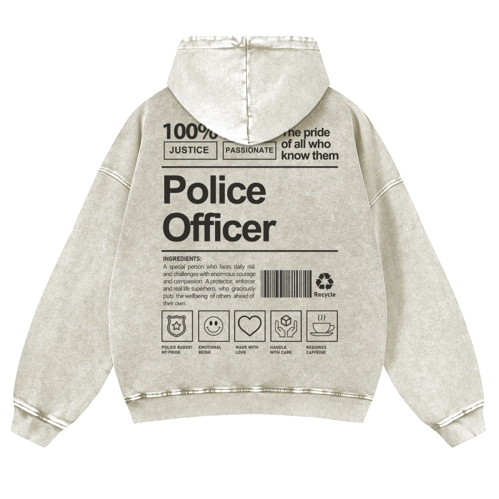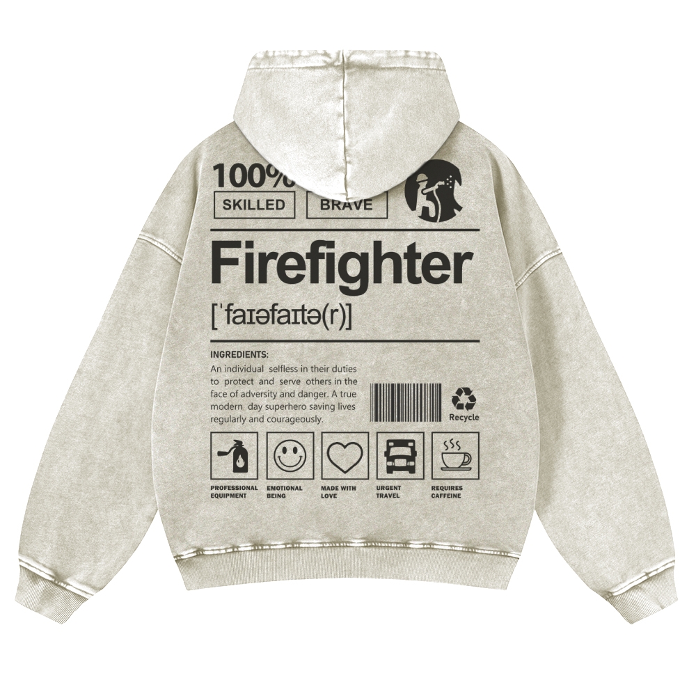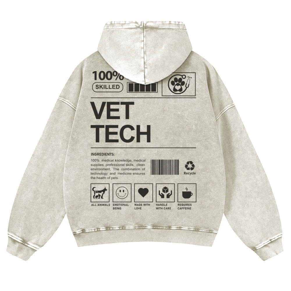 Tiger Warrior Pattern Printed Vintage Washed Hoodie