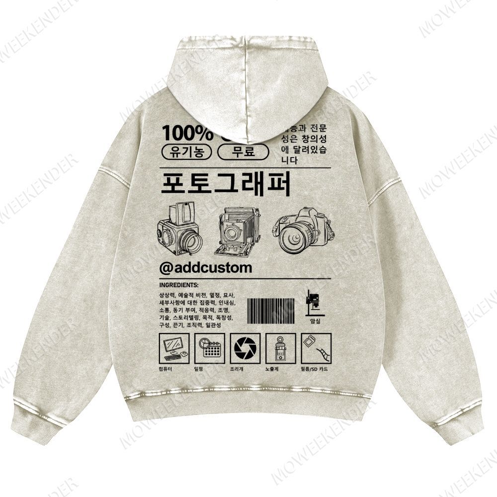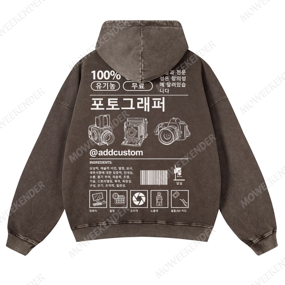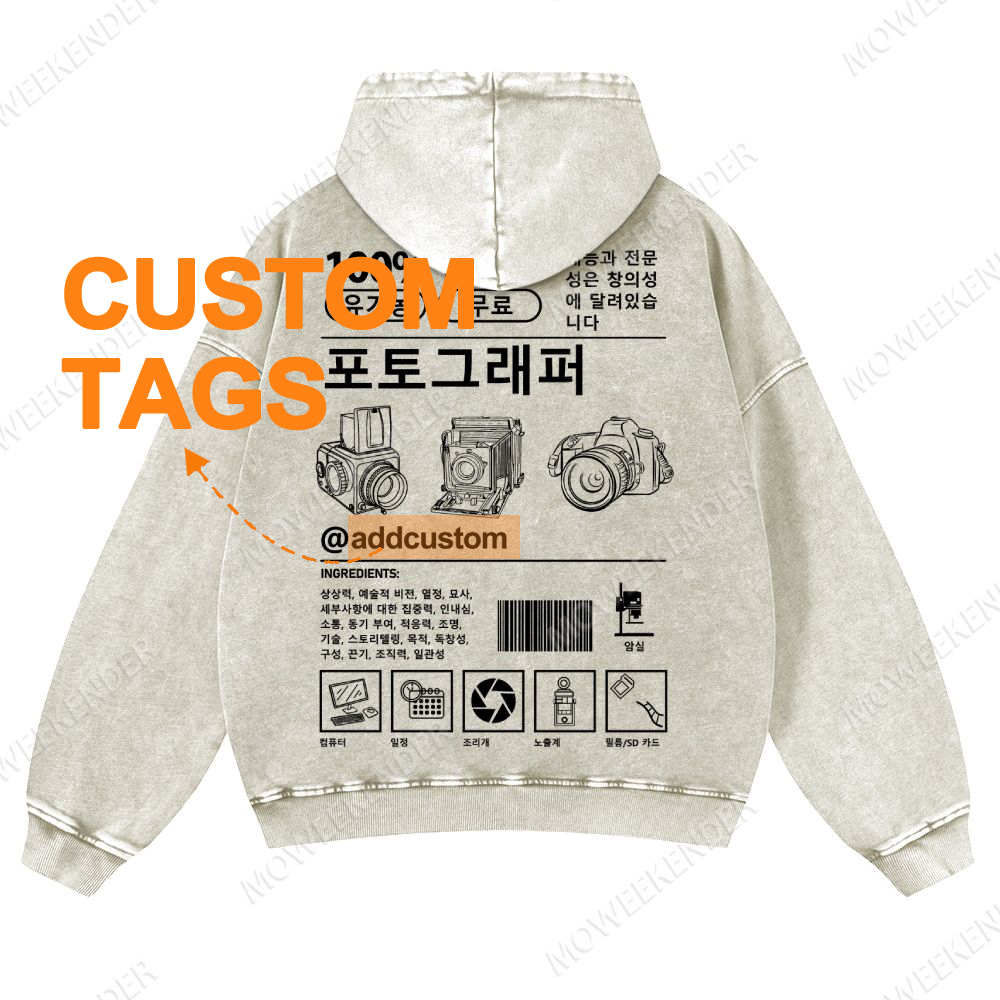 포토그래퍼 Custom Unisex Fit Vintage Washed Hoodie
