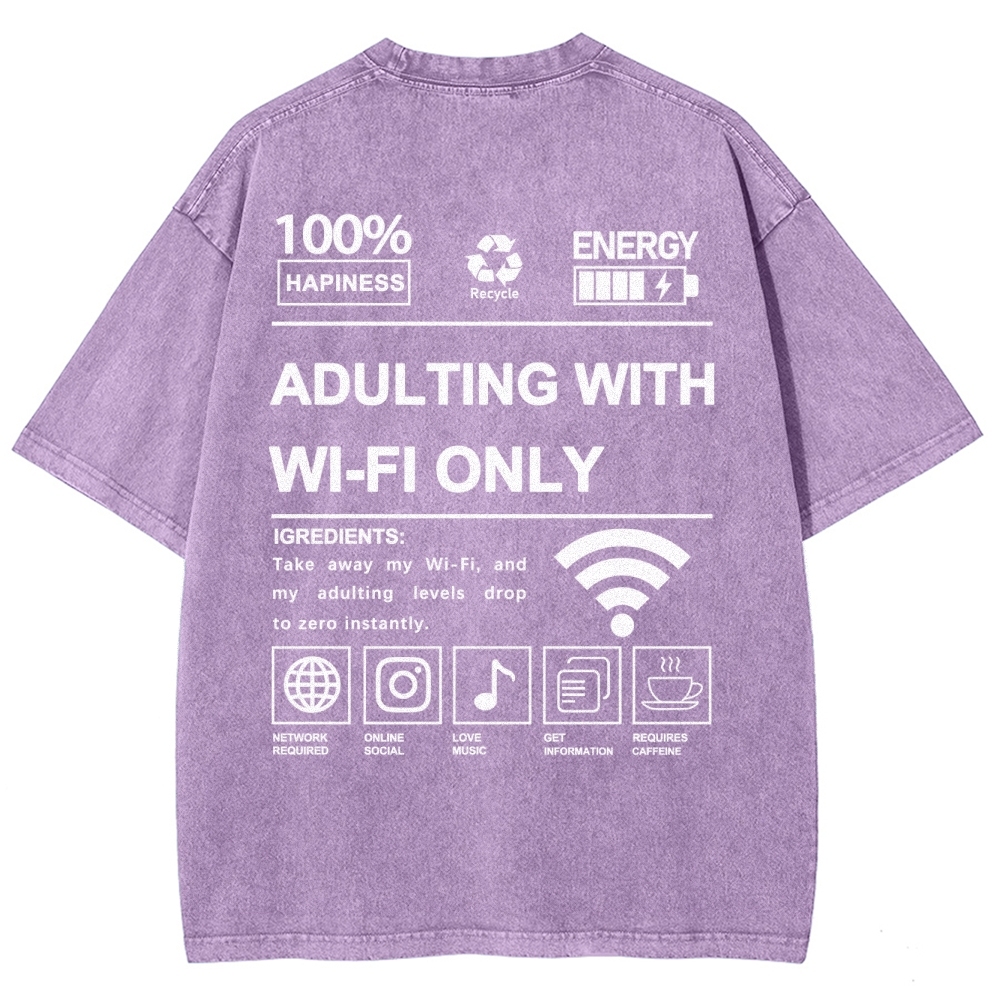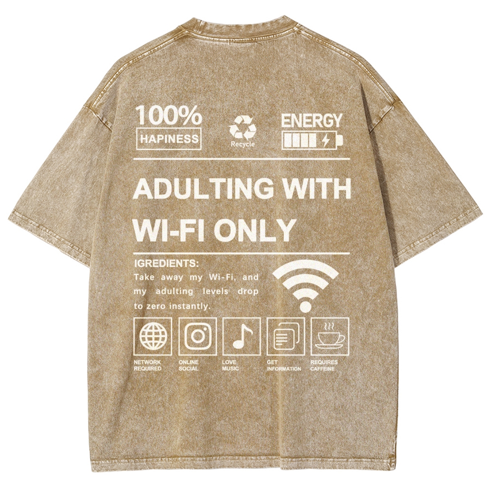 Adulting with Wi-Fi Only Unisex Fit Washed T-Shirt