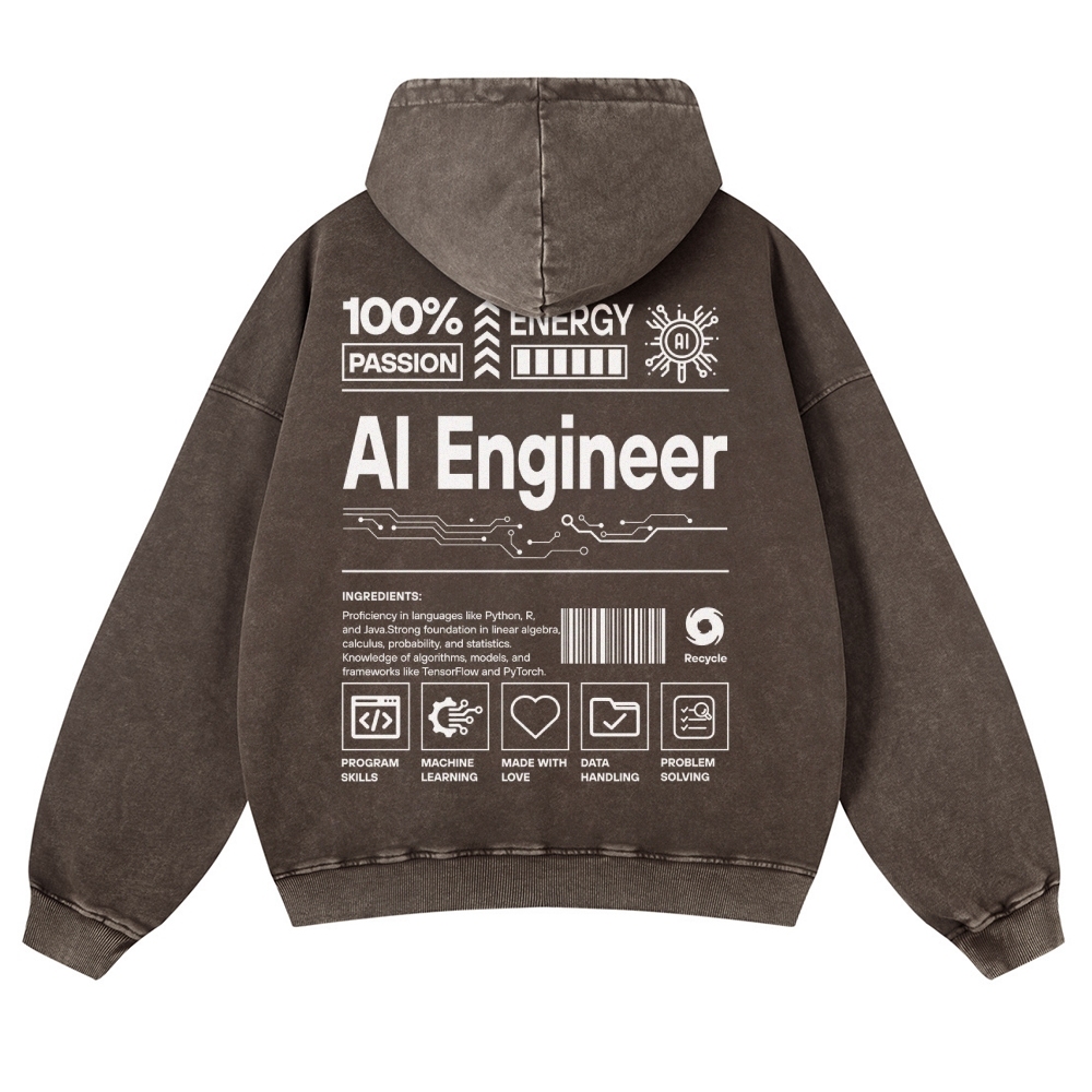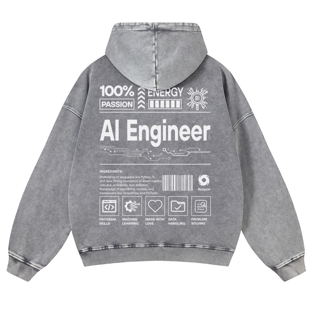 AI Engineer Unisex Fit Vintage Washed Hoodie