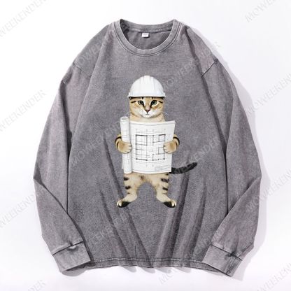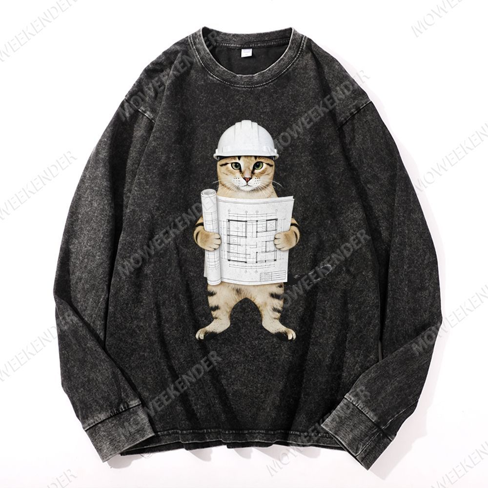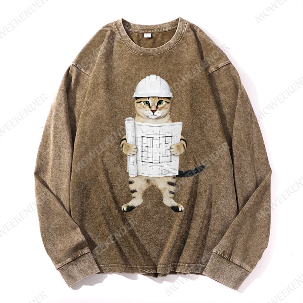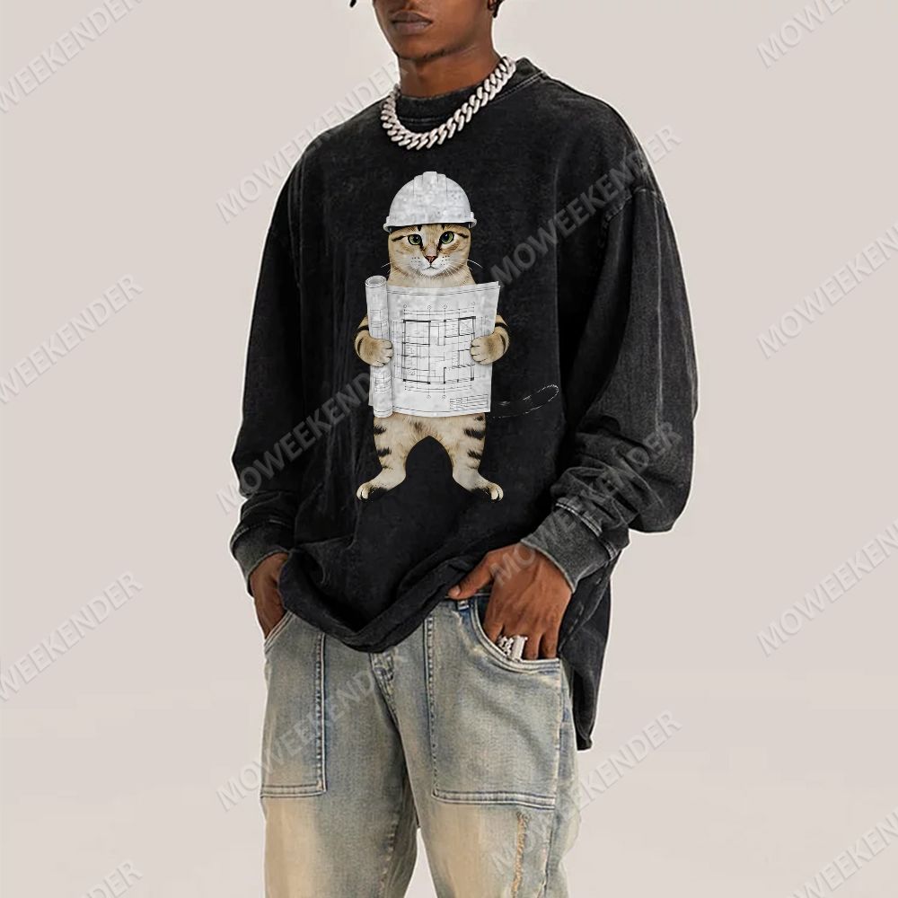 Architect & Engineer Cat Deep Washed Vintage Long Sleeves T-Shirt