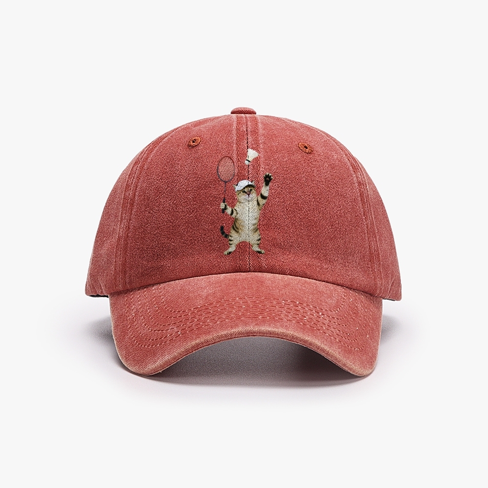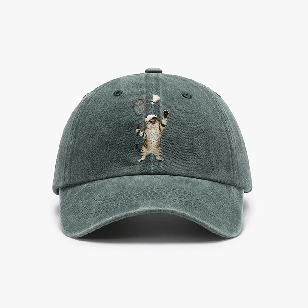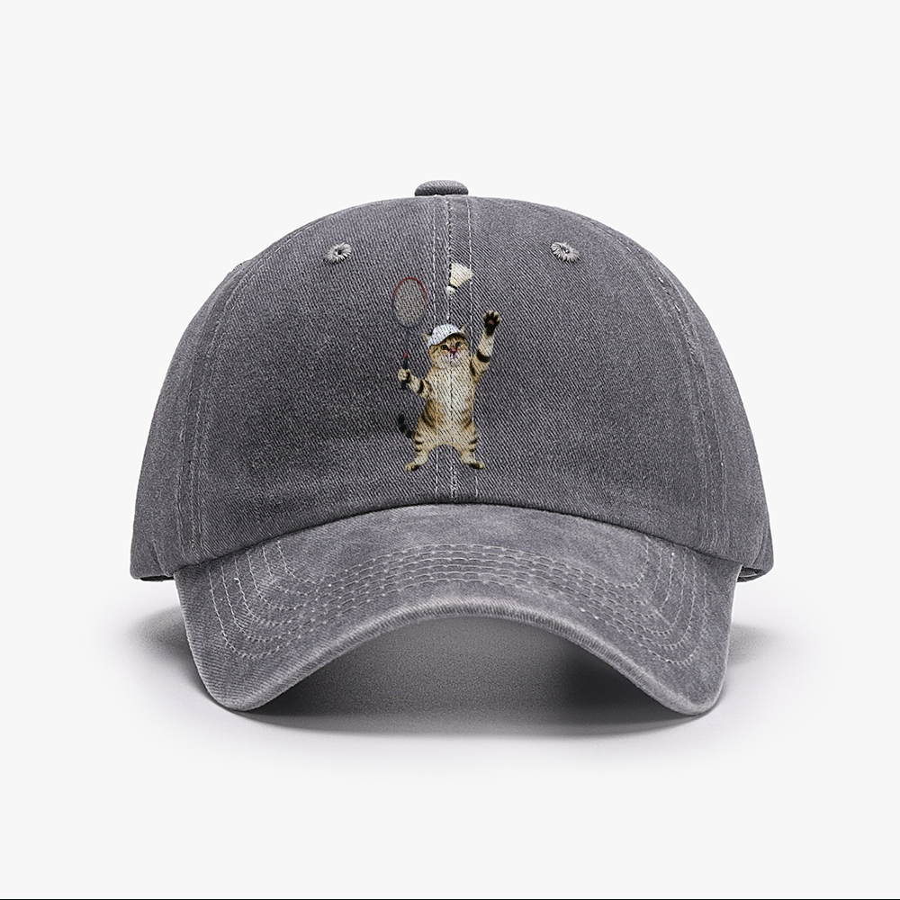 Badminton Player Cat Unisex Washed Vintage Baseball Cap