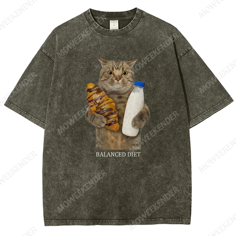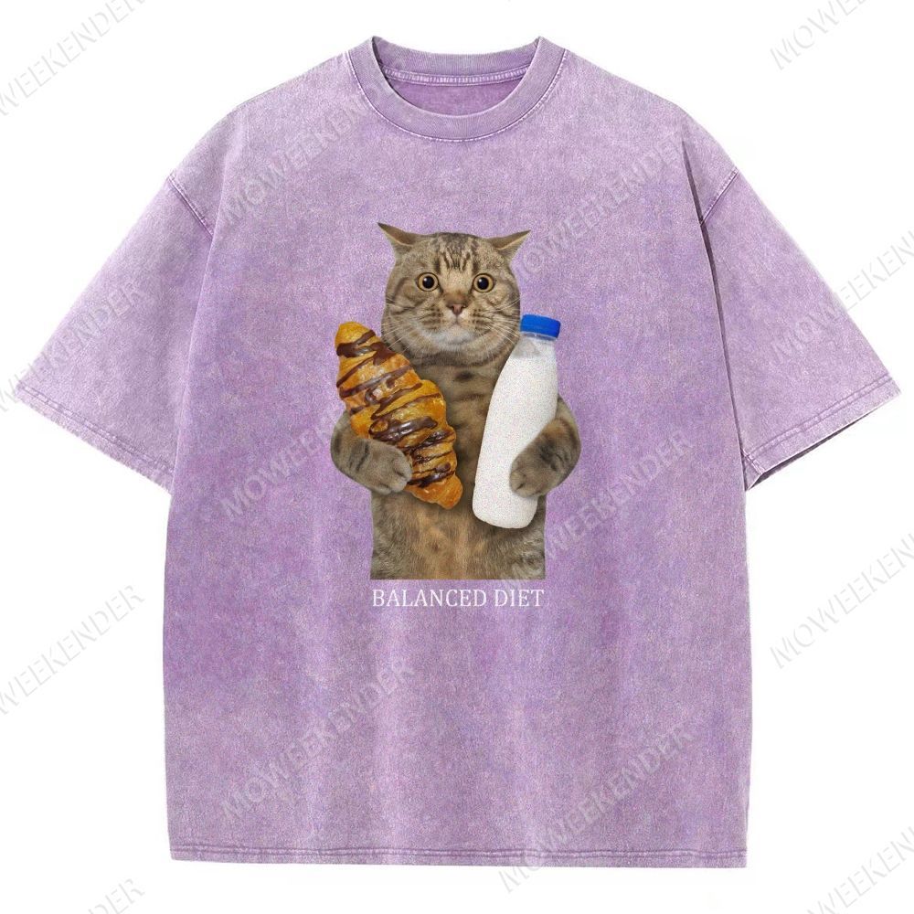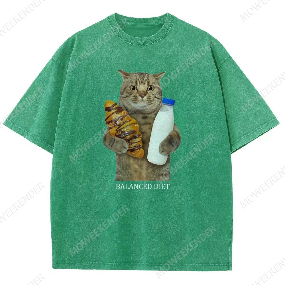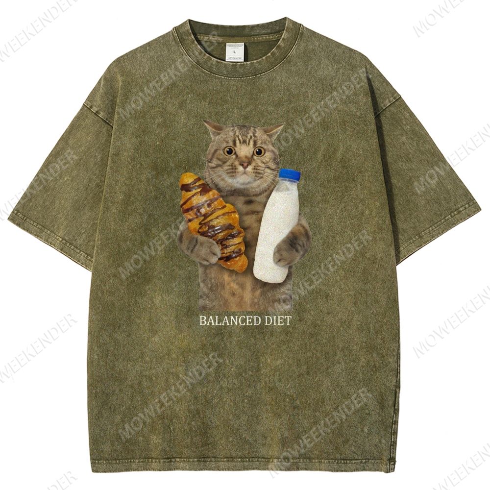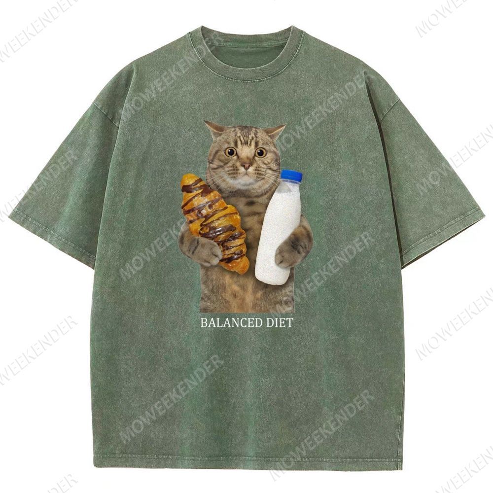 Balanced Diet Funny Cat Unisex Fit Washed T-Shirt