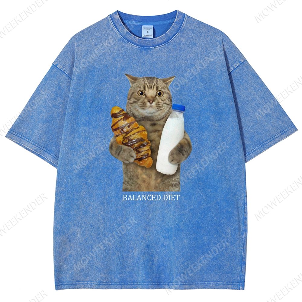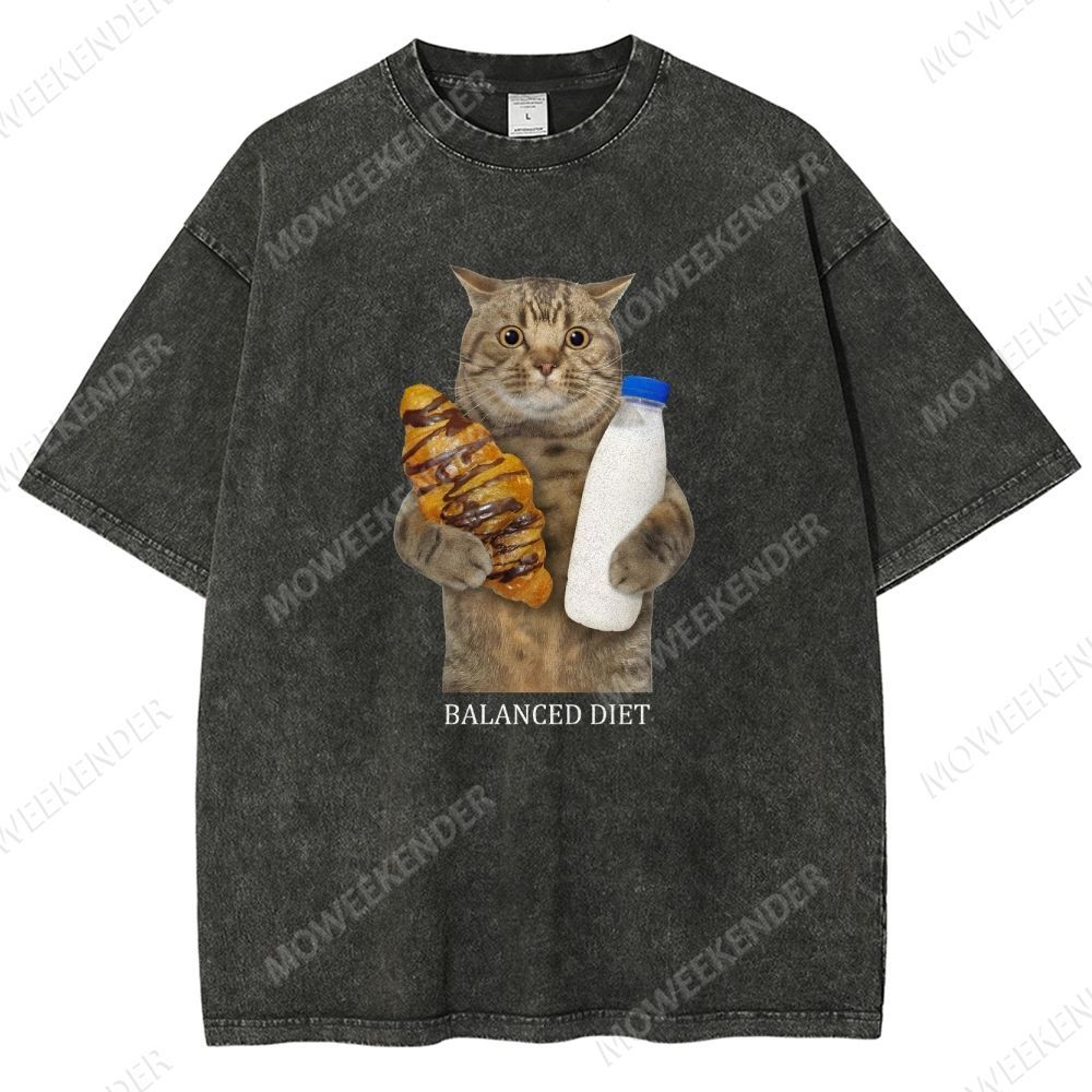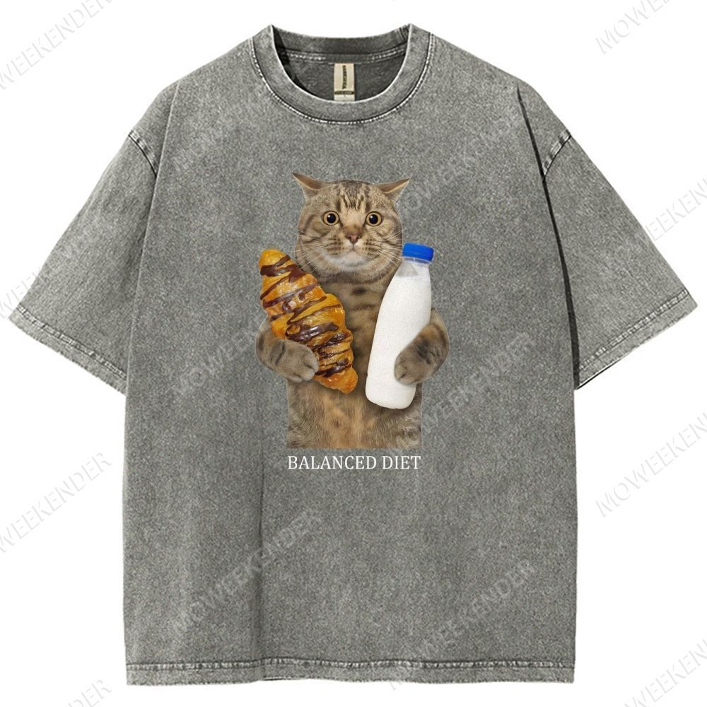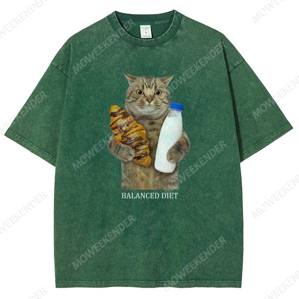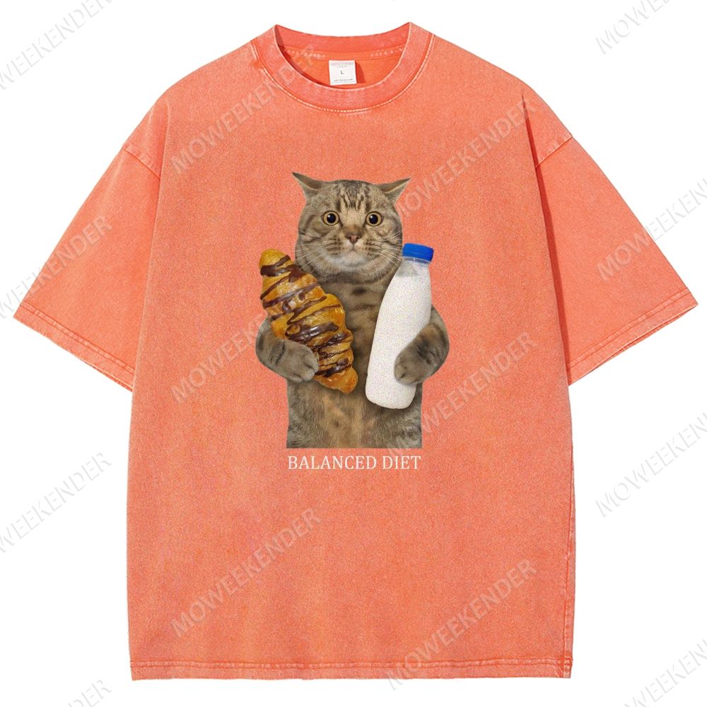 Balanced Diet Funny Cat Unisex Fit Washed T-Shirt