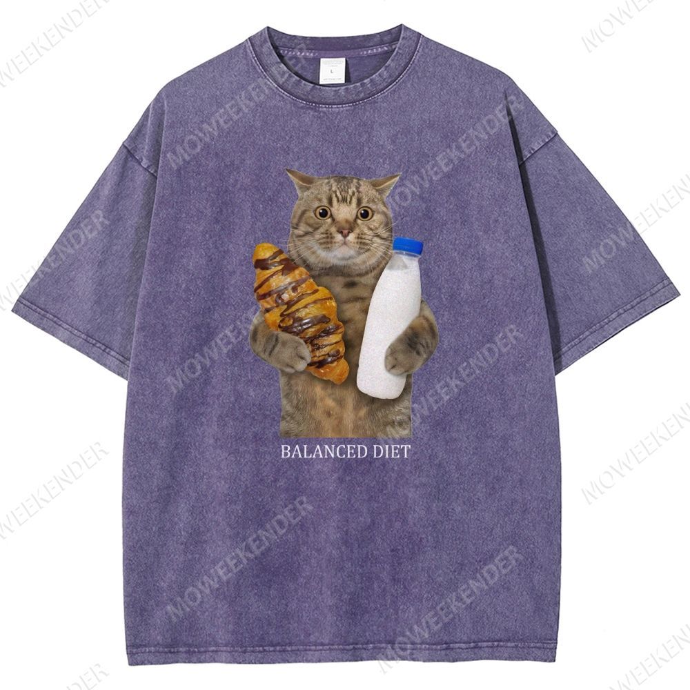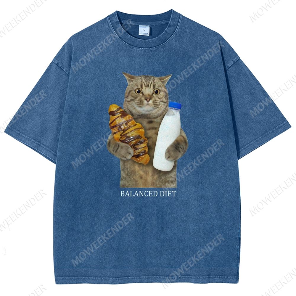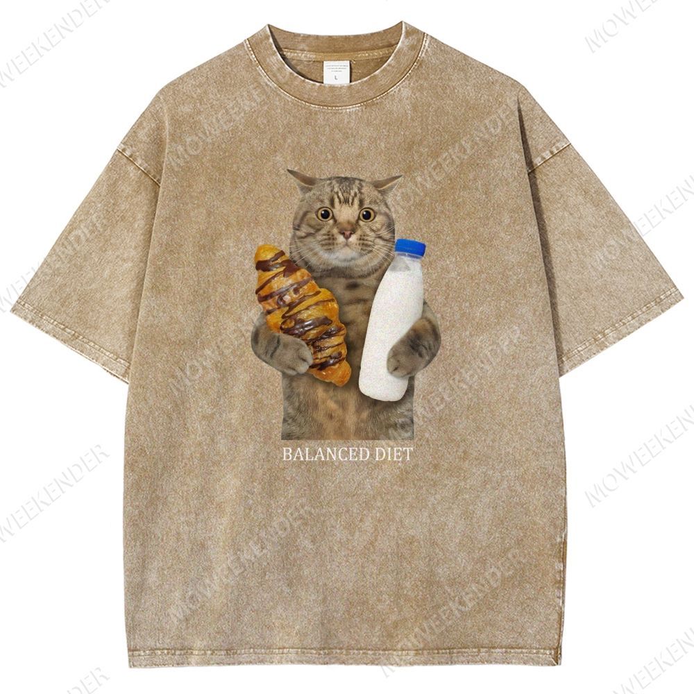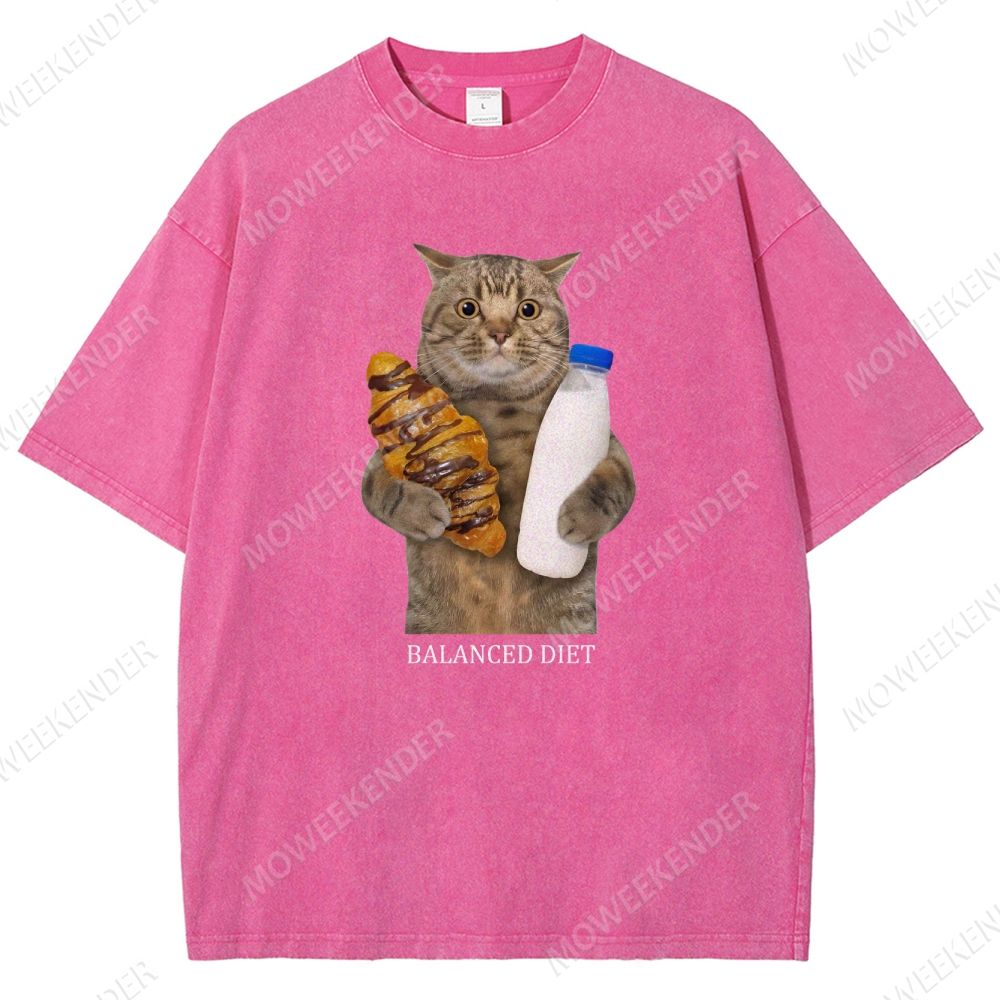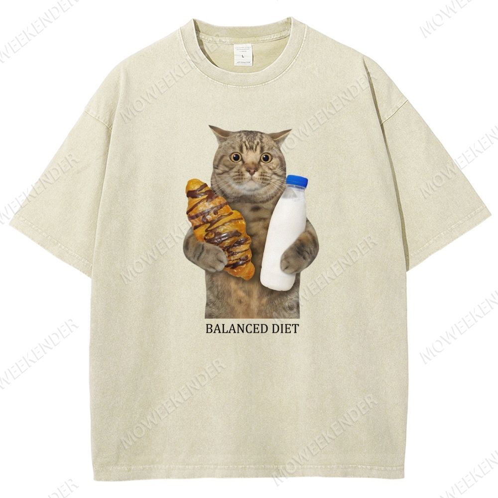 Balanced Diet Funny Cat Unisex Fit Washed T-Shirt