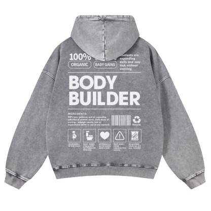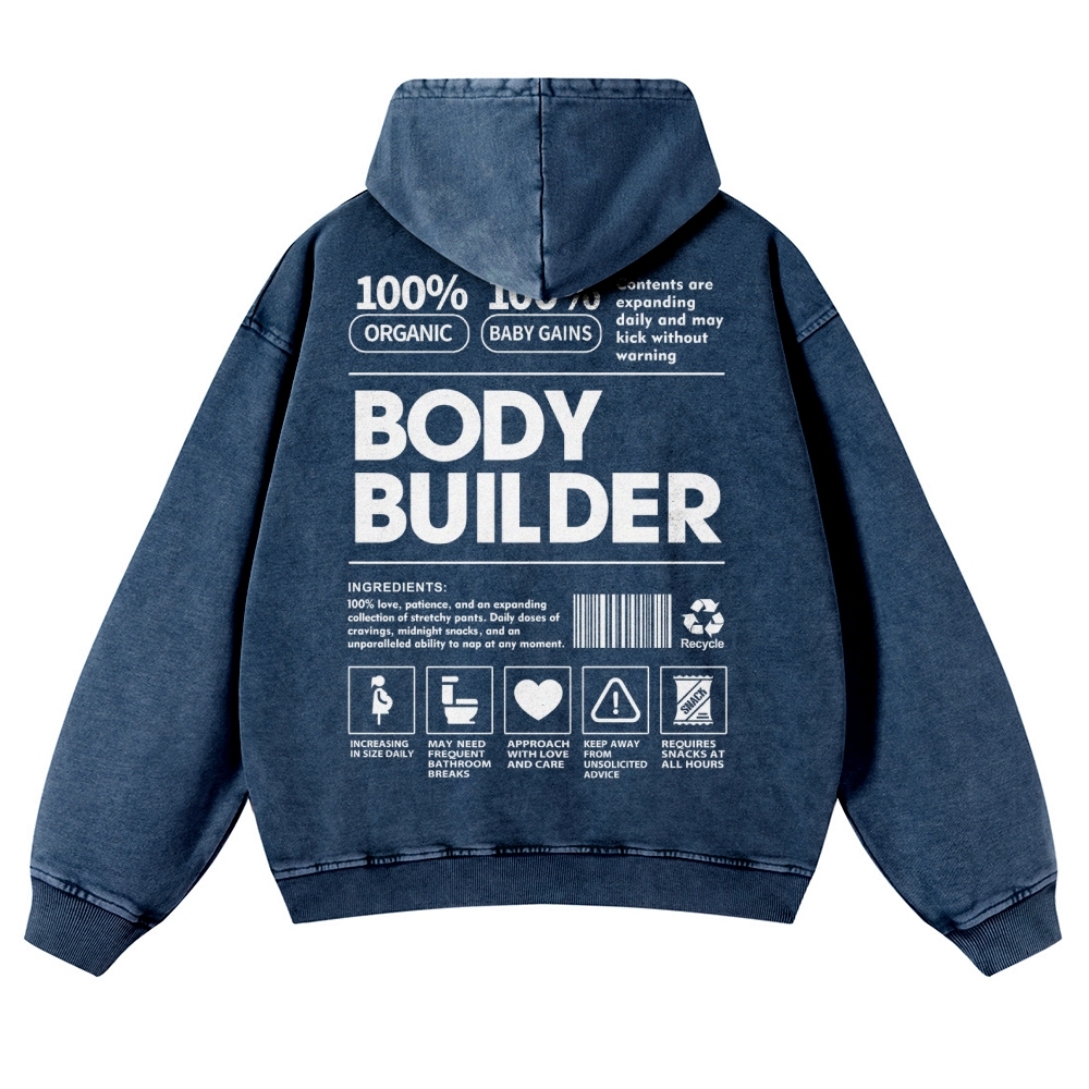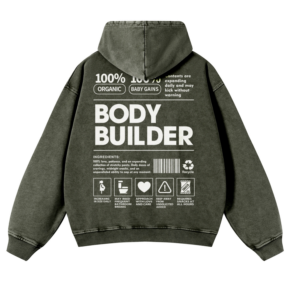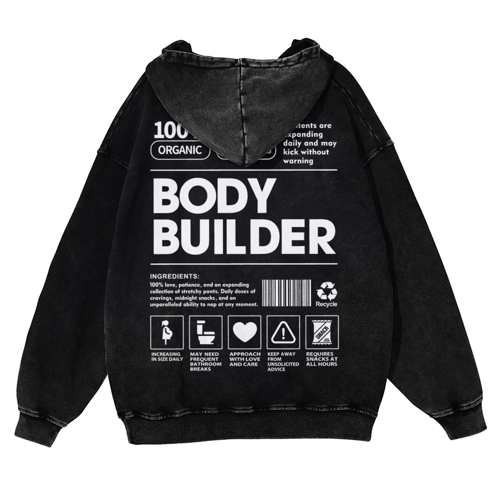Body Builder Unisex Fit Vintage Washed Hoodie