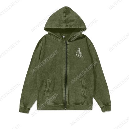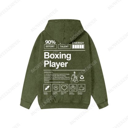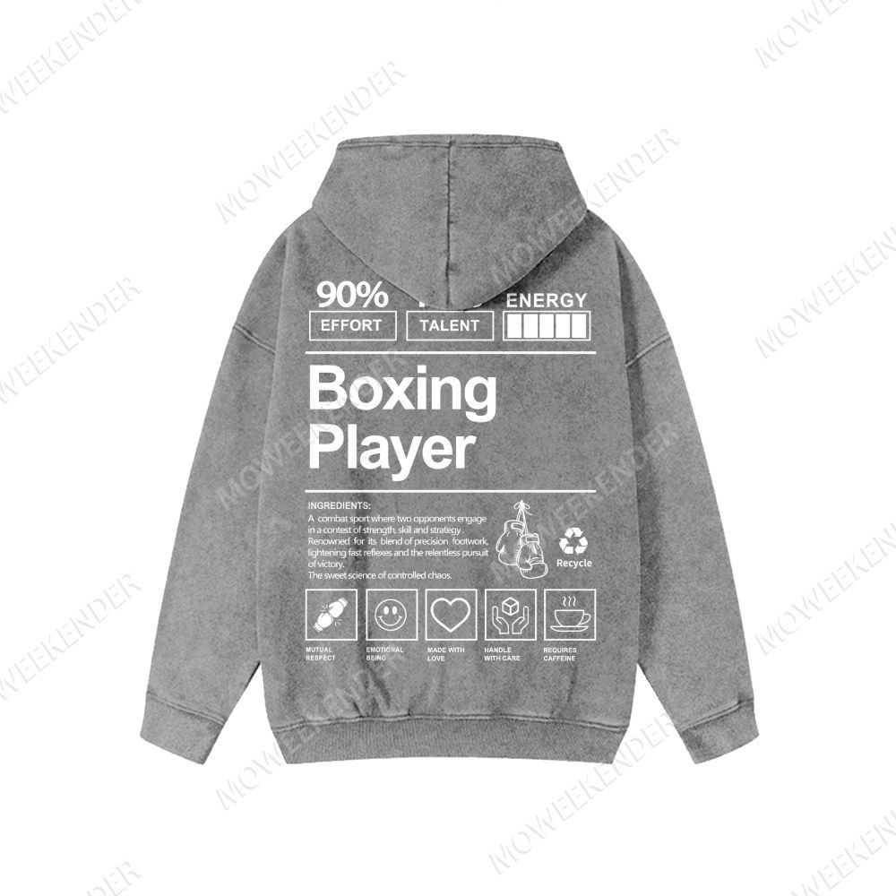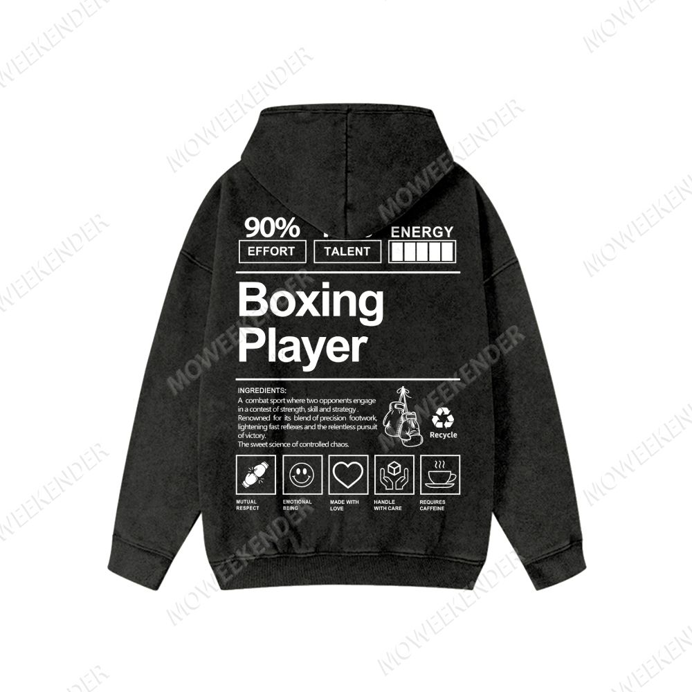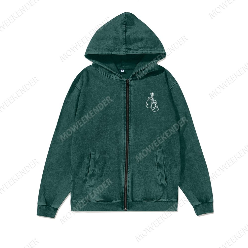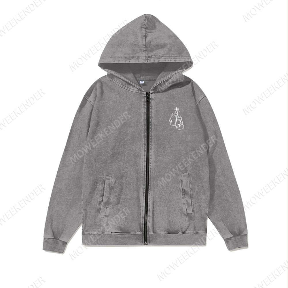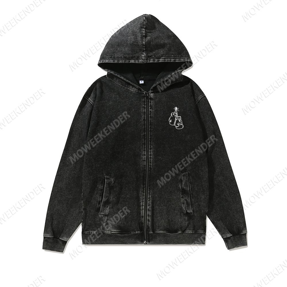 Boxing Player Washed Cotton Zipper Hooded Sweatshirt
