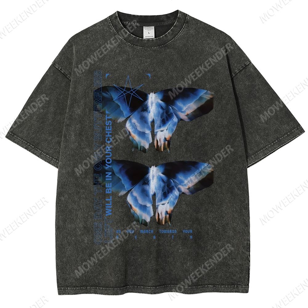 Butterflies Pattern Cyberpunk Unisex Fit Washed T-Shirt