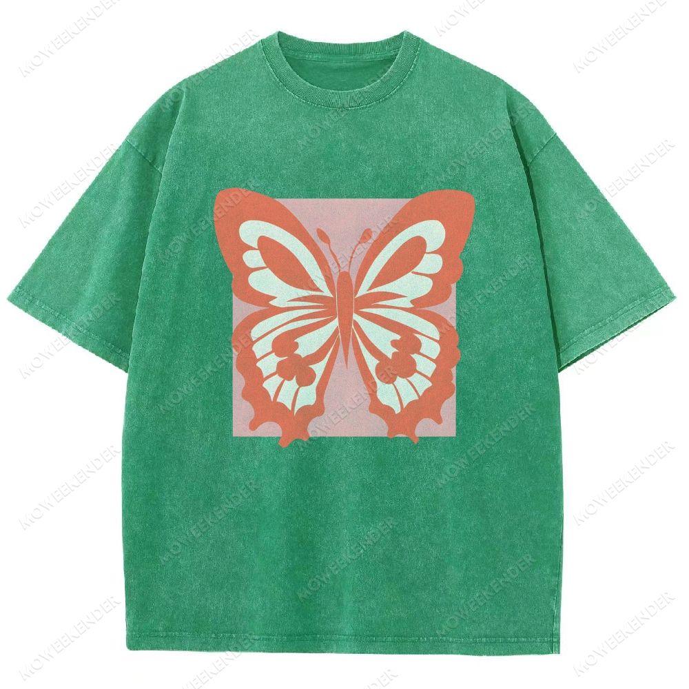 Butterfly Pattern Unisex Fit Washed T-Shirt