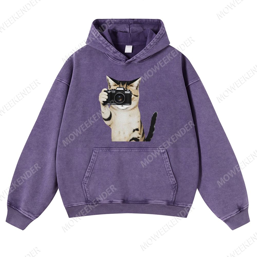 Camera Cat Photographer Unisex Fit Vintage Washed Hoodie