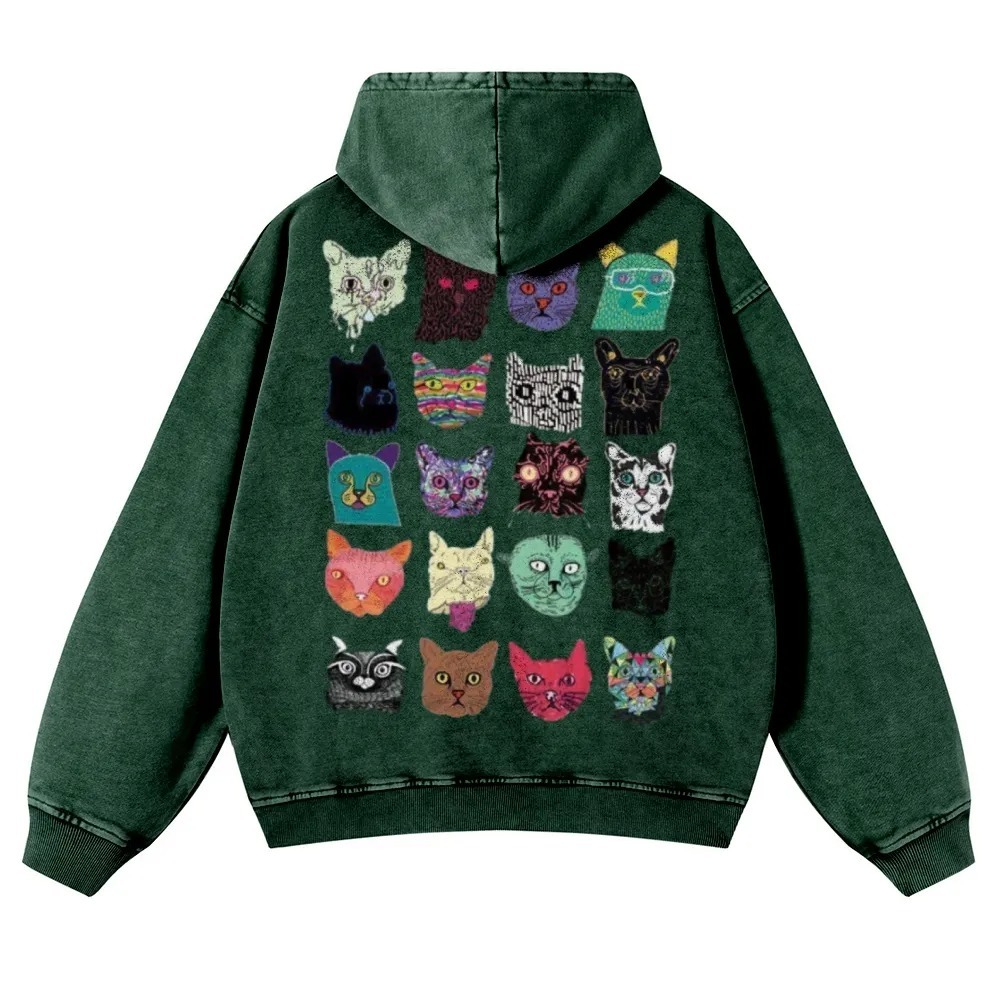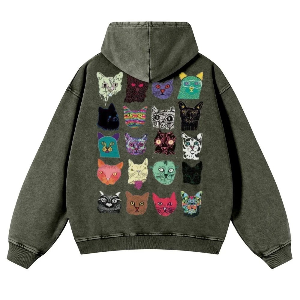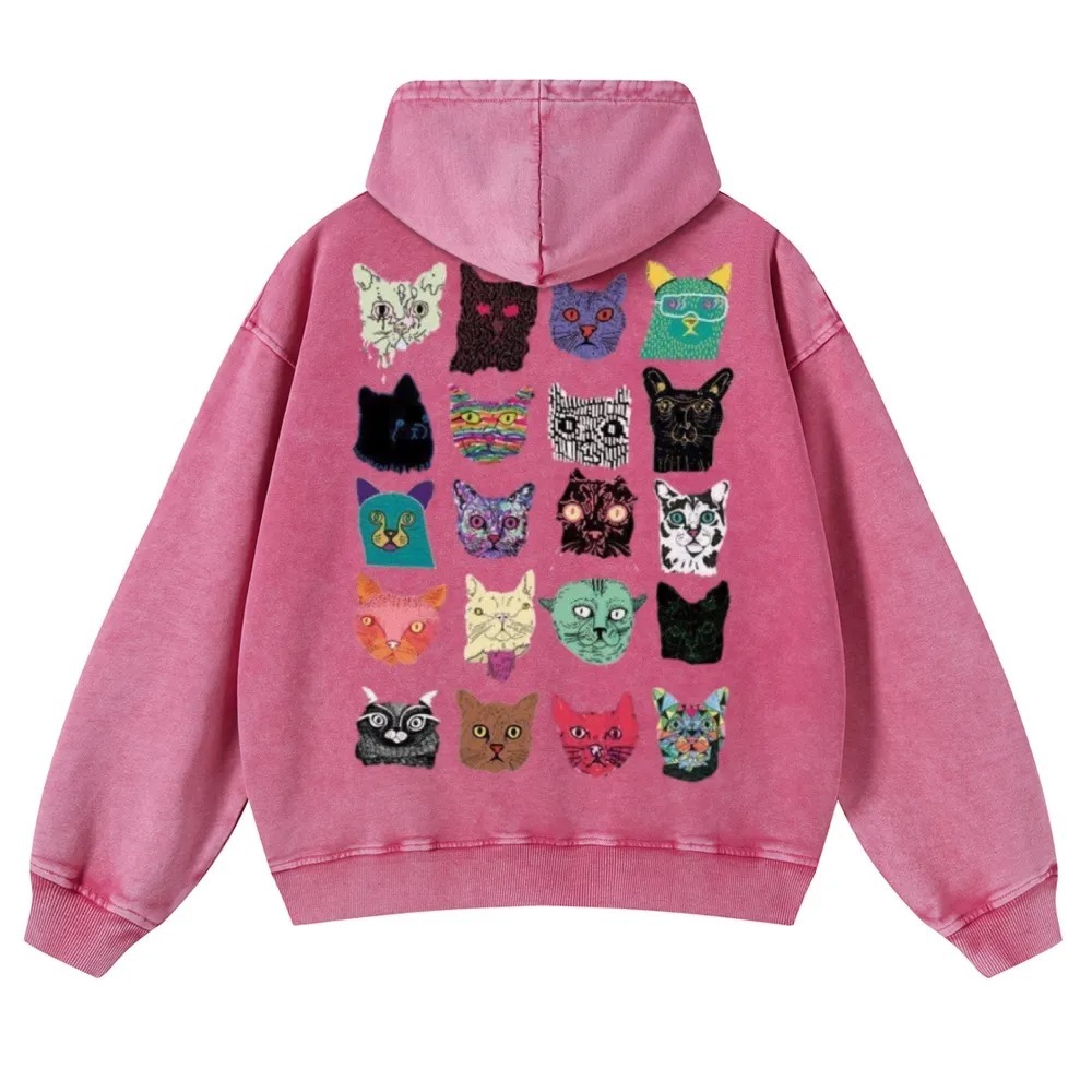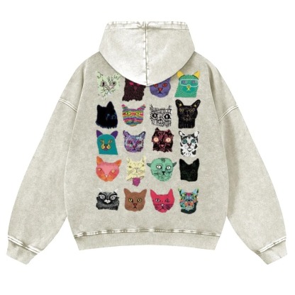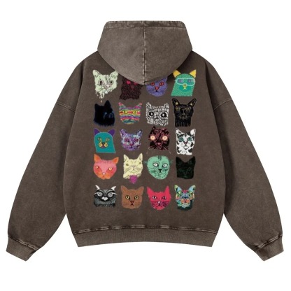 Cat Art Retro Totem Unisex Fit Vintage Washed Hoodie