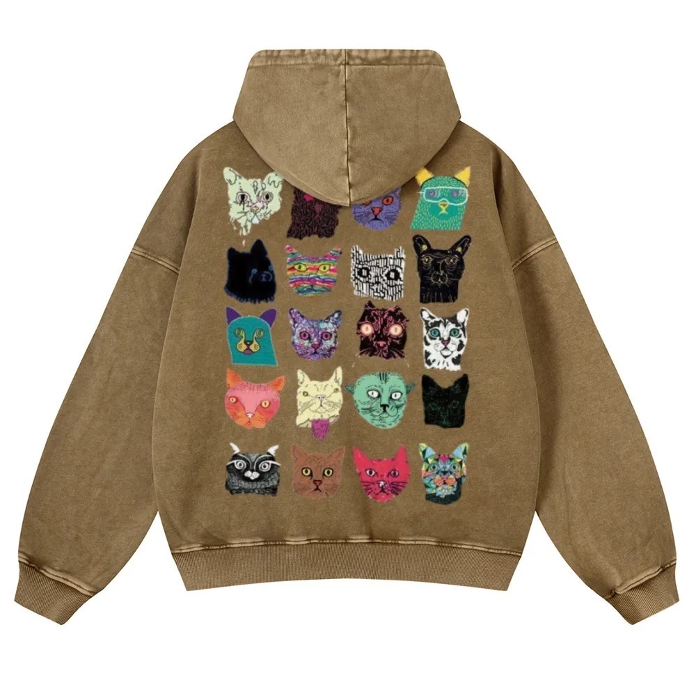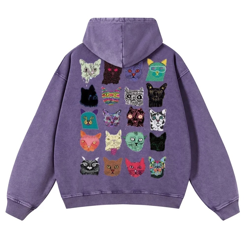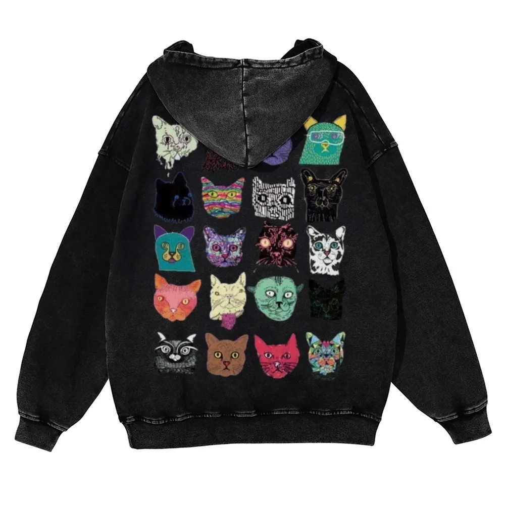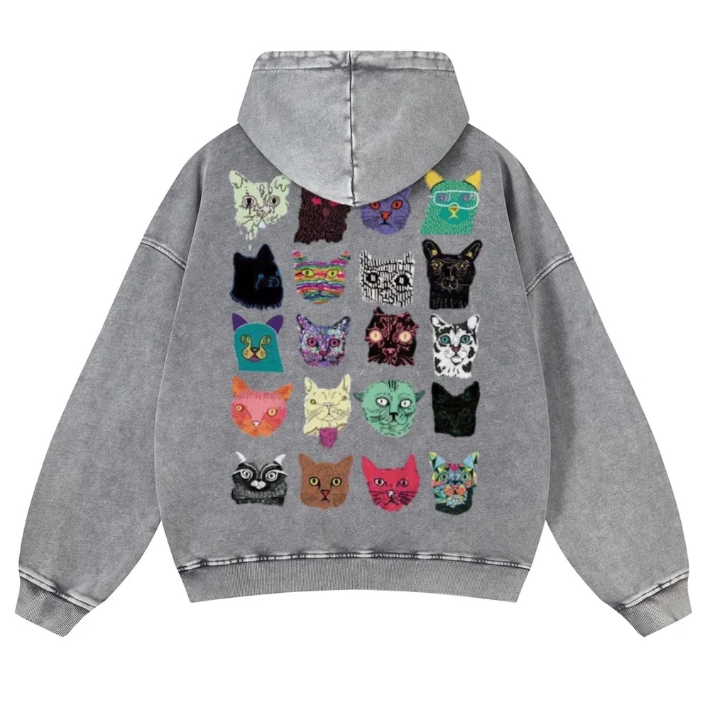 Cat Art Retro Totem Unisex Fit Vintage Washed Hoodie
