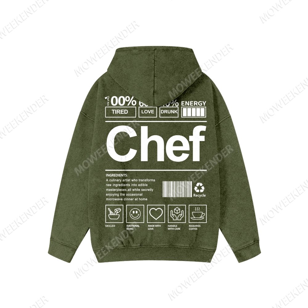 Chef 40% Drunk Washed Cotton Zipper Hooded Sweatshirt