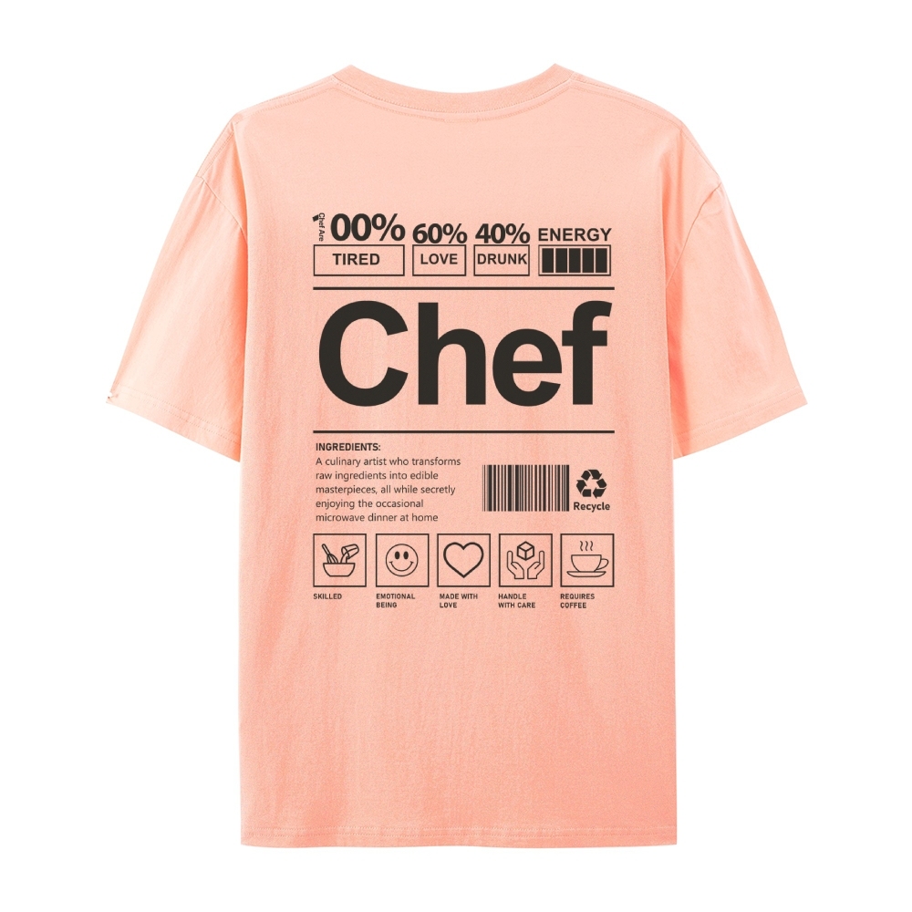 Chef Are 100%Tired 60%Love 40%Drunk Casual Short Sleeve T-Shirt