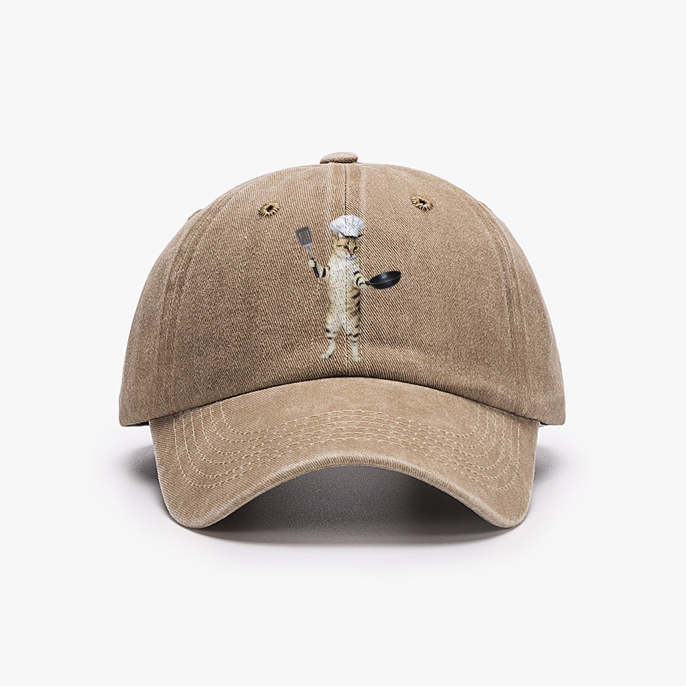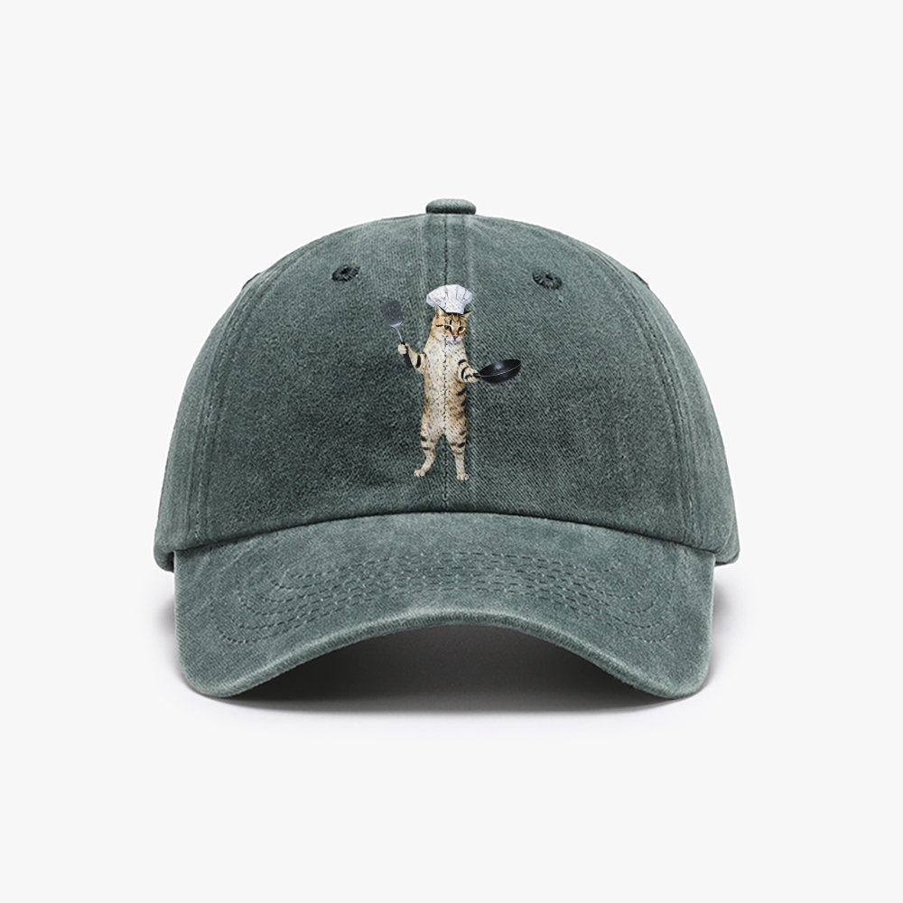Chef Cat Unisex Washed Vintage Baseball Cap