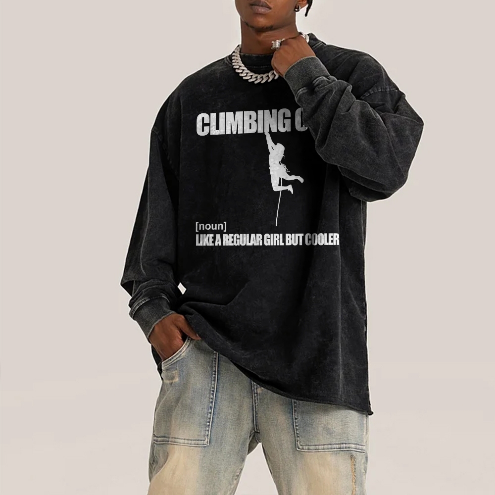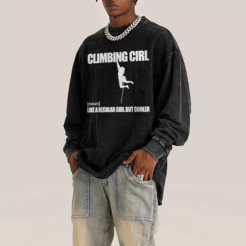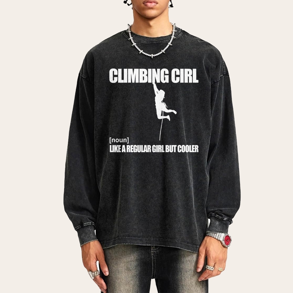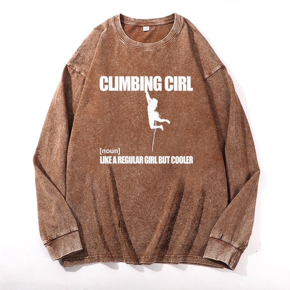 Climbing Girl Like A Regular Girl But Cooler Climber Deep Washed Vintage Long Sleeves T-Shirt