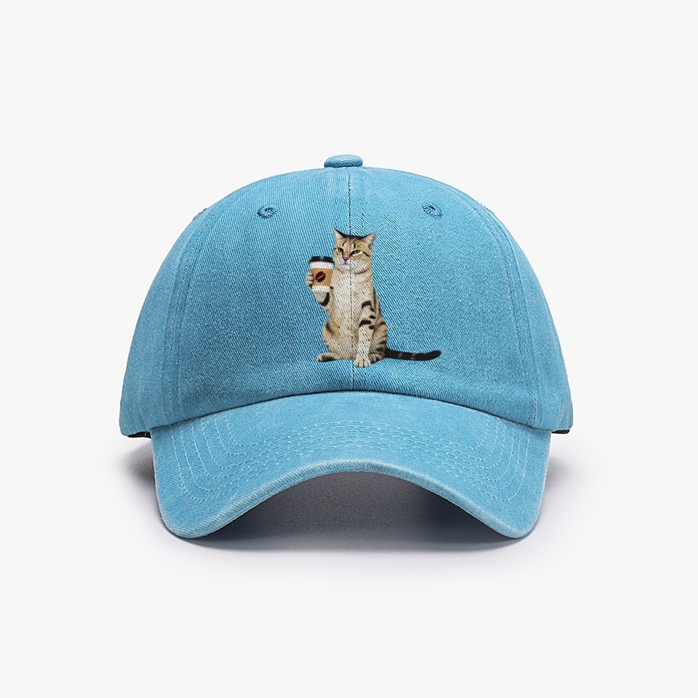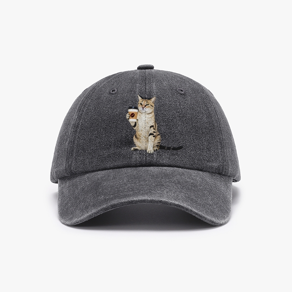 Coffee Cat Unisex Washed Vintage Baseball Cap