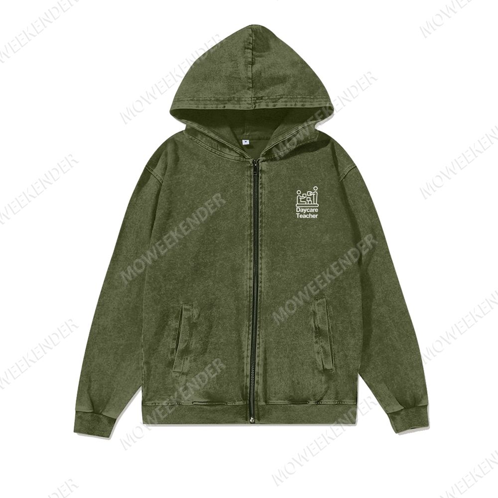 Daycare Teacher Washed Cotton Zipper Hooded Sweatshirt