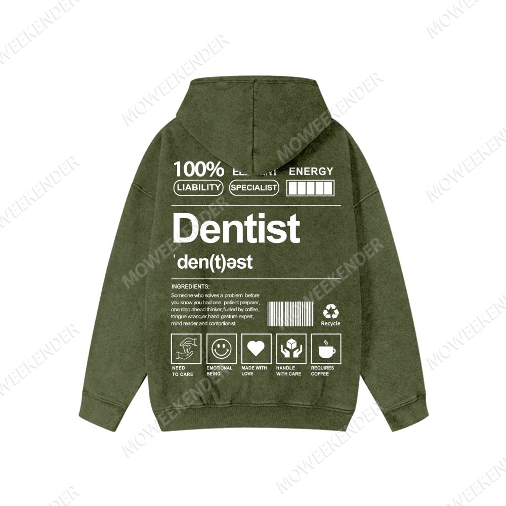 Dentist Washed Cotton Zipper Hooded Sweatshirt