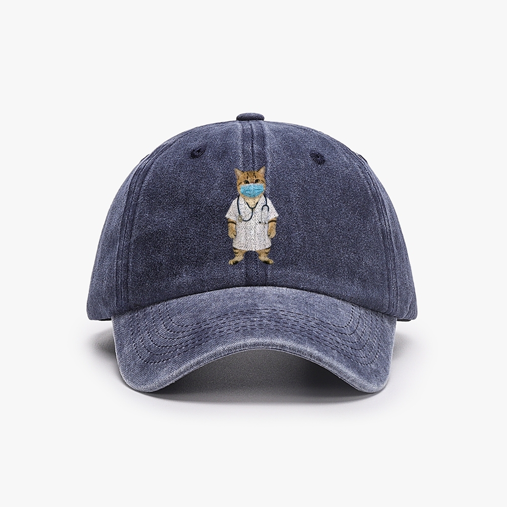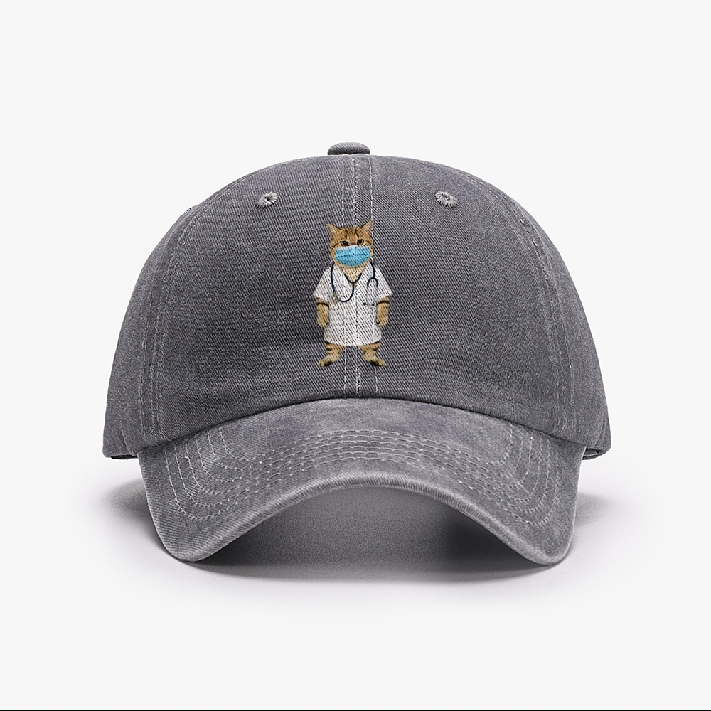 Doctor Cat Unisex Washed Vintage Baseball Cap