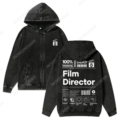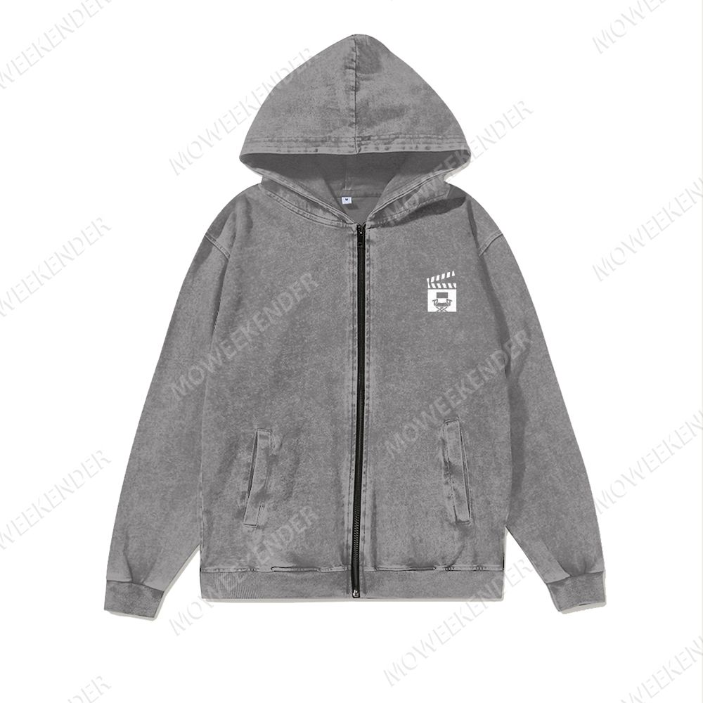 Film Director Unisex Washed Cotton Zipper Hooded Sweatshirt