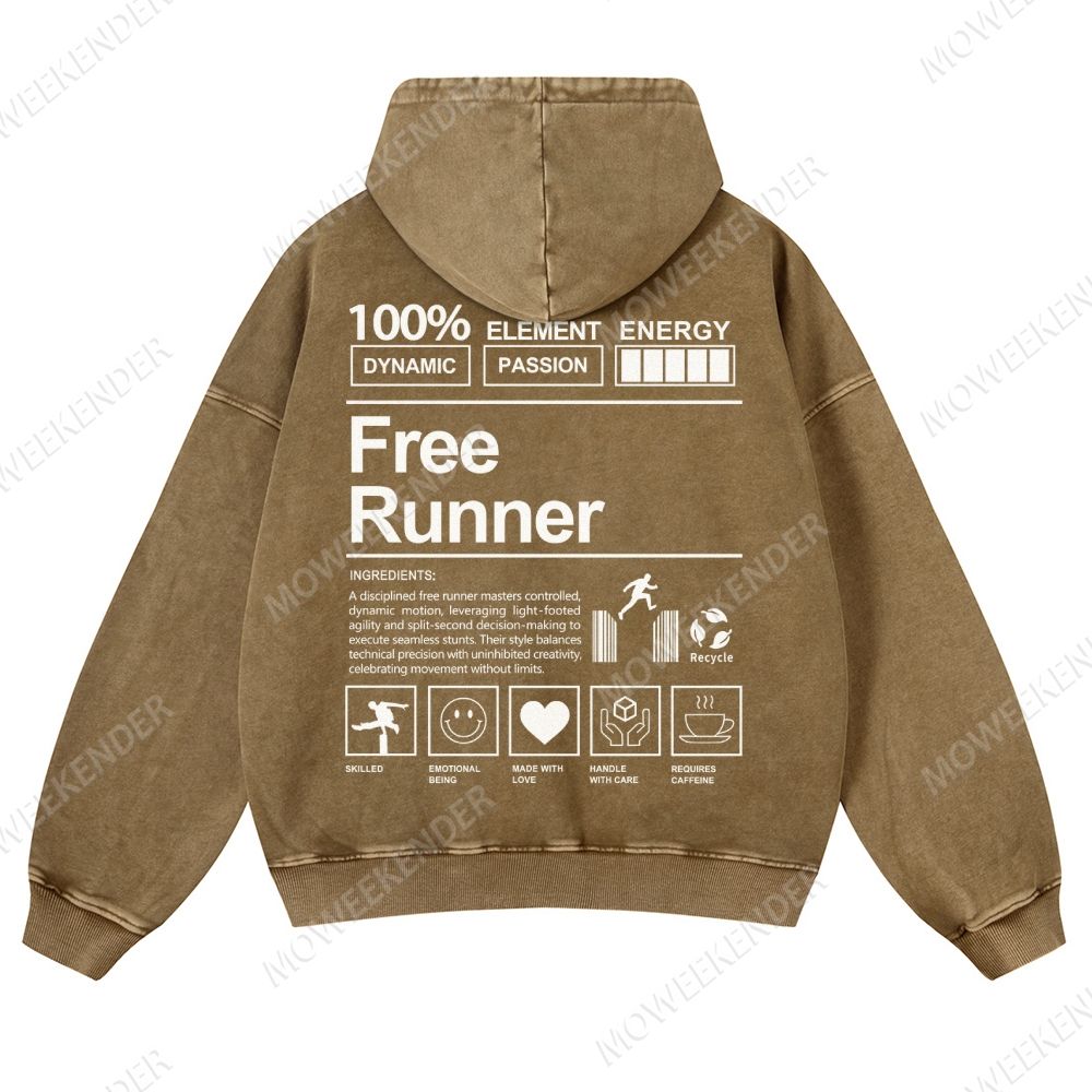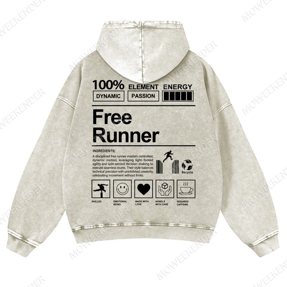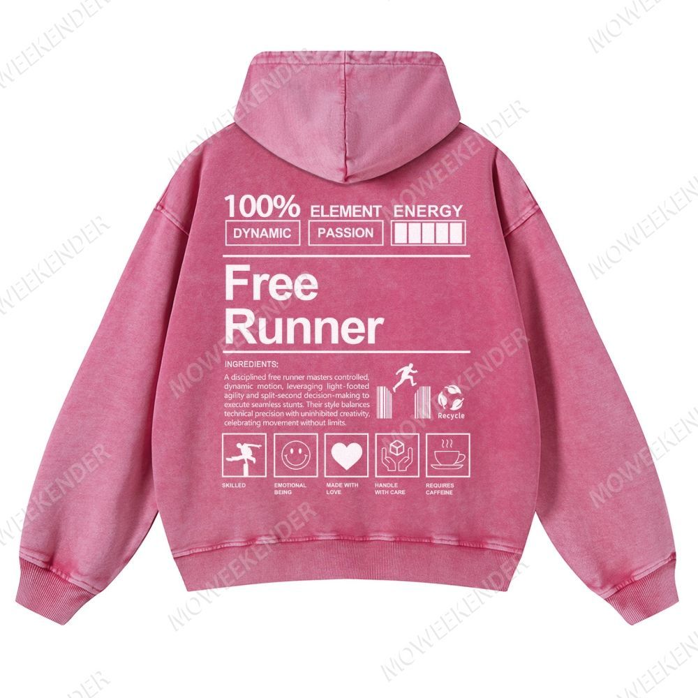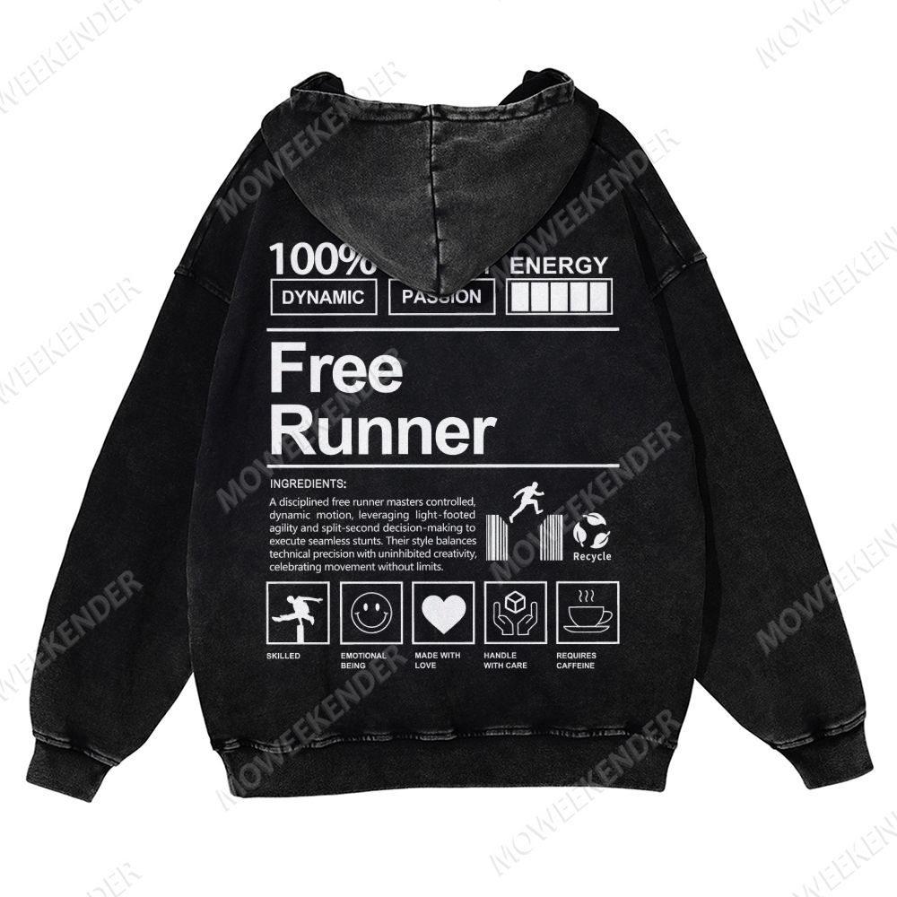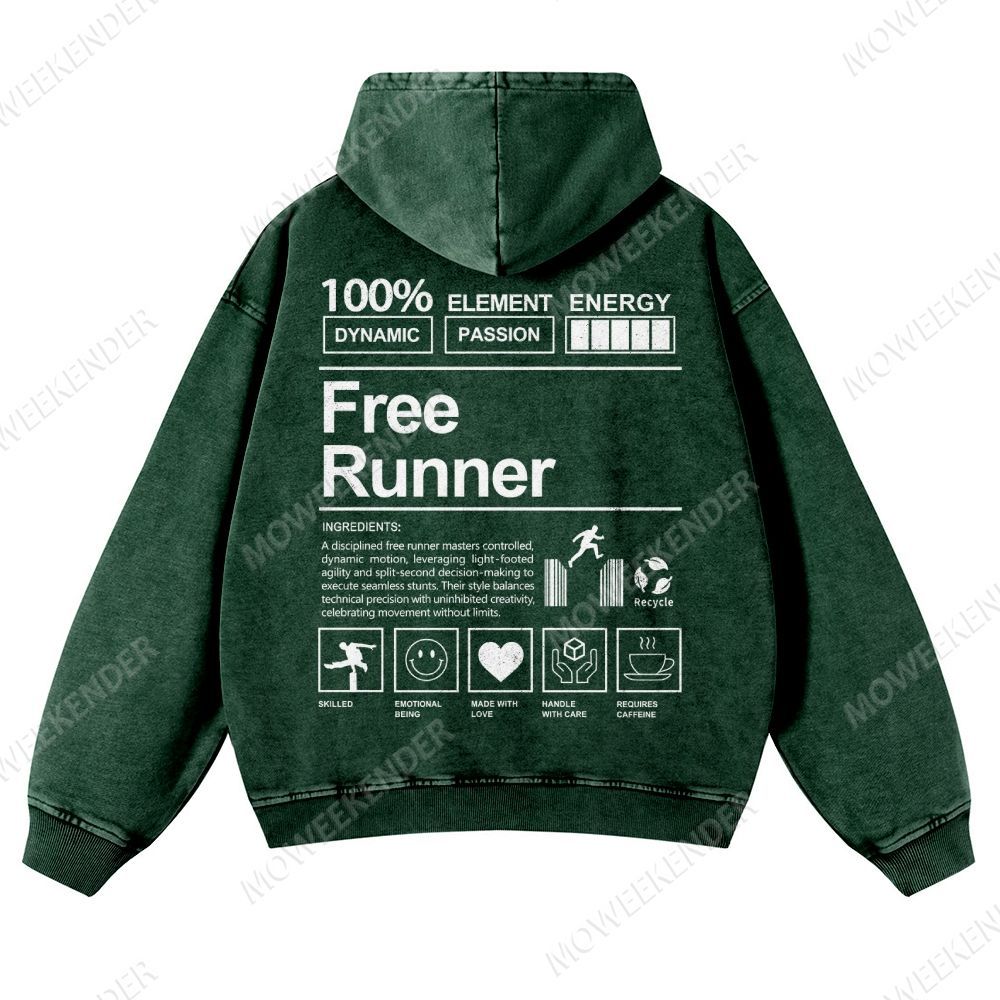 Free Runner Unisex Fit Vintage Washed Hoodie