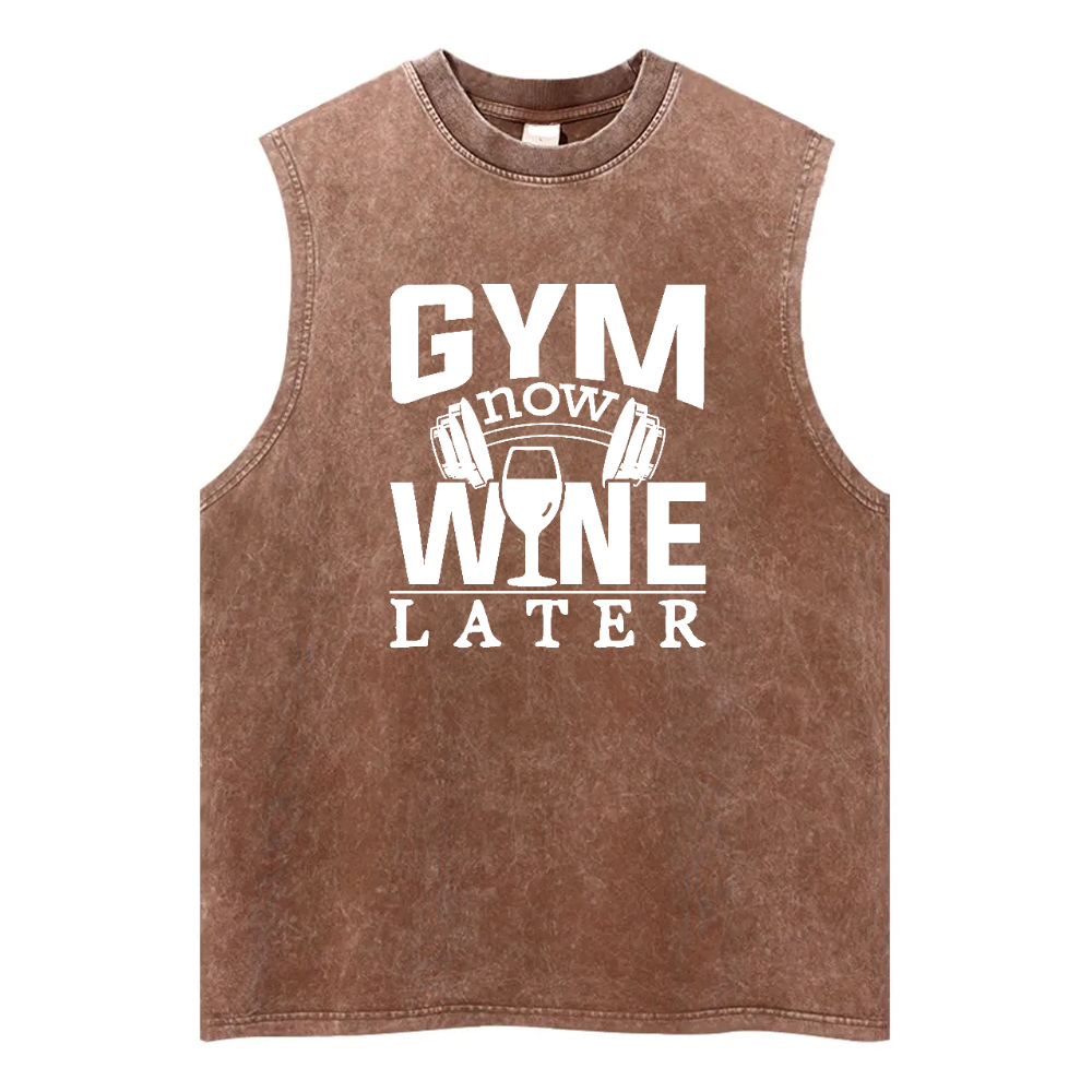 GYM NOW WINE LATER Washed Fitness Tank Top