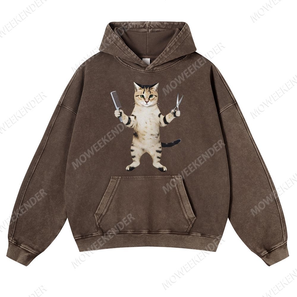 Hairstylist & Barber Cat Unisex Fit Vintage Washed Hoodie