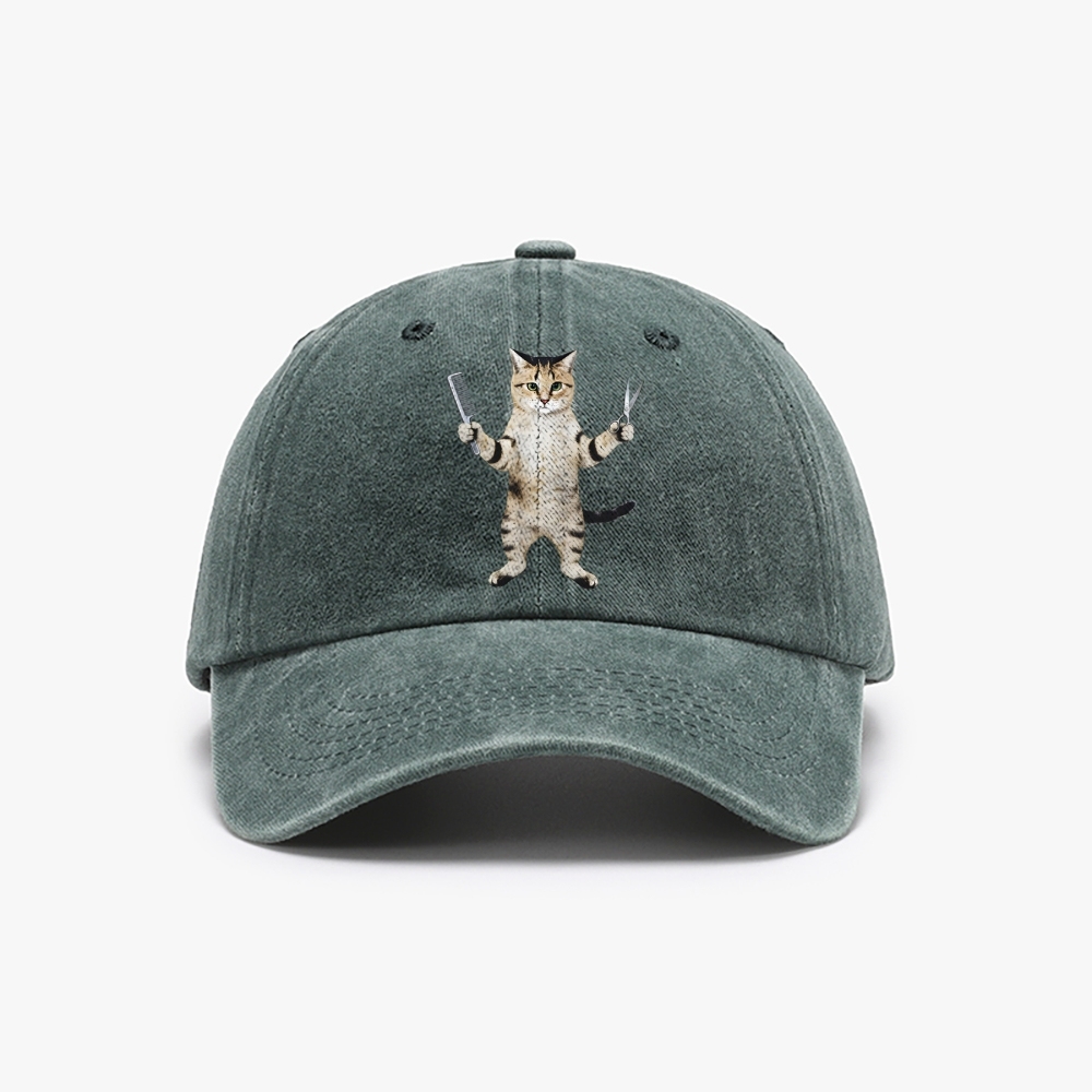 Hairstylist & Barber Cat Unisex Washed Vintage Baseball Cap