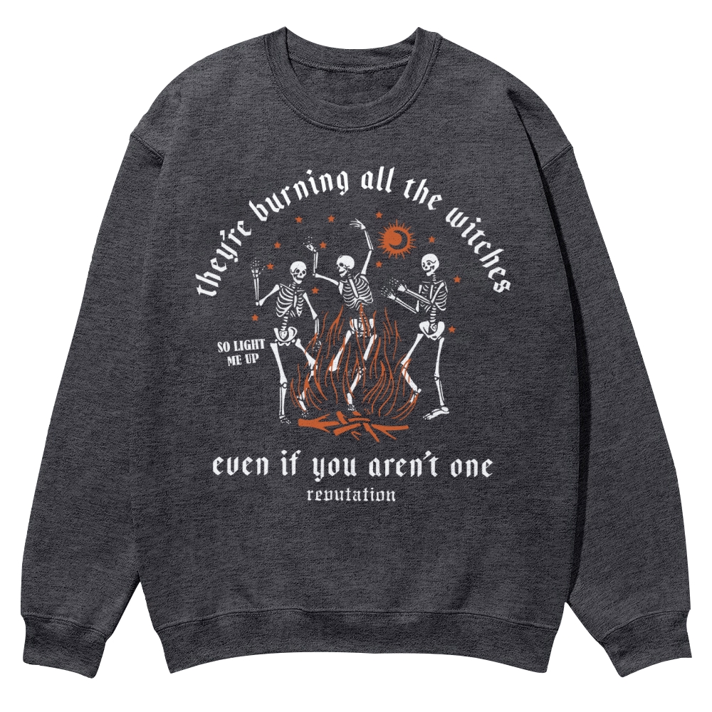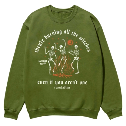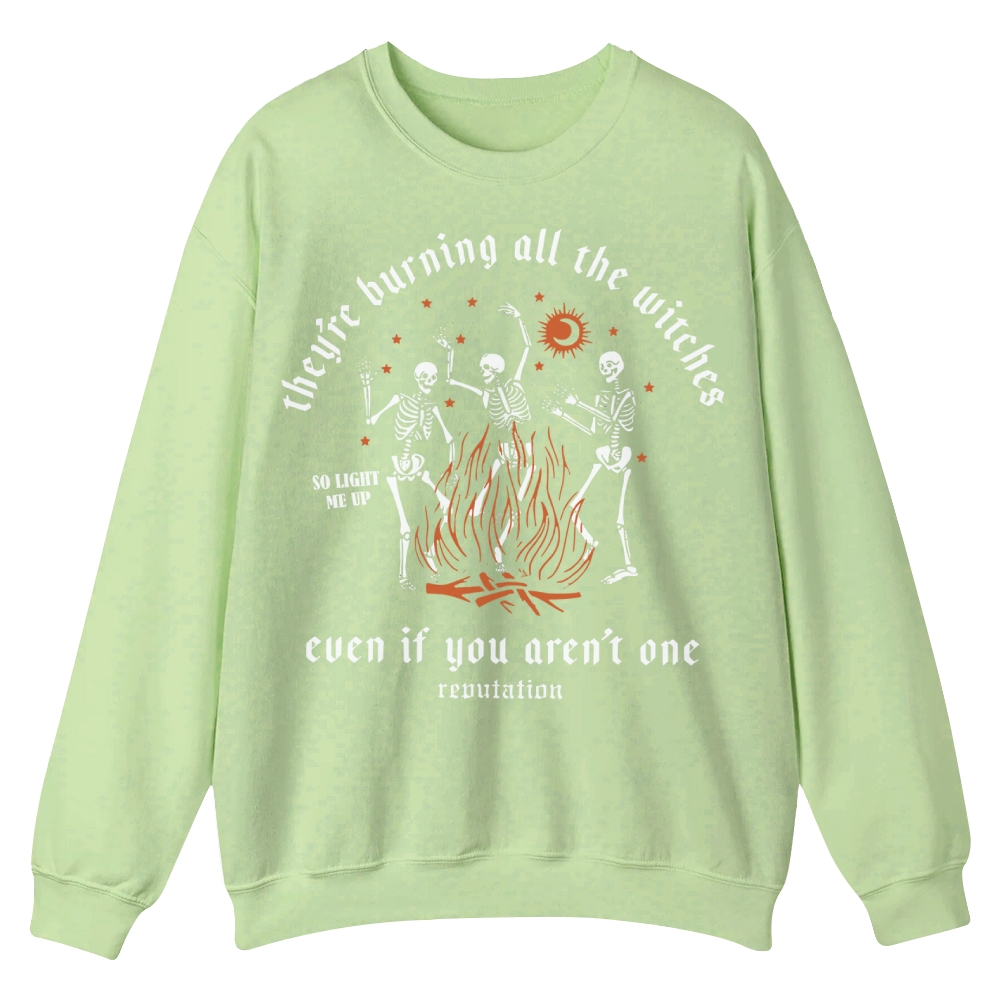 Halloween They'Re Burning All The Witches So Light Me Up Even If You Aren'T One Renutat Casual Crewneck Sweatshirt
