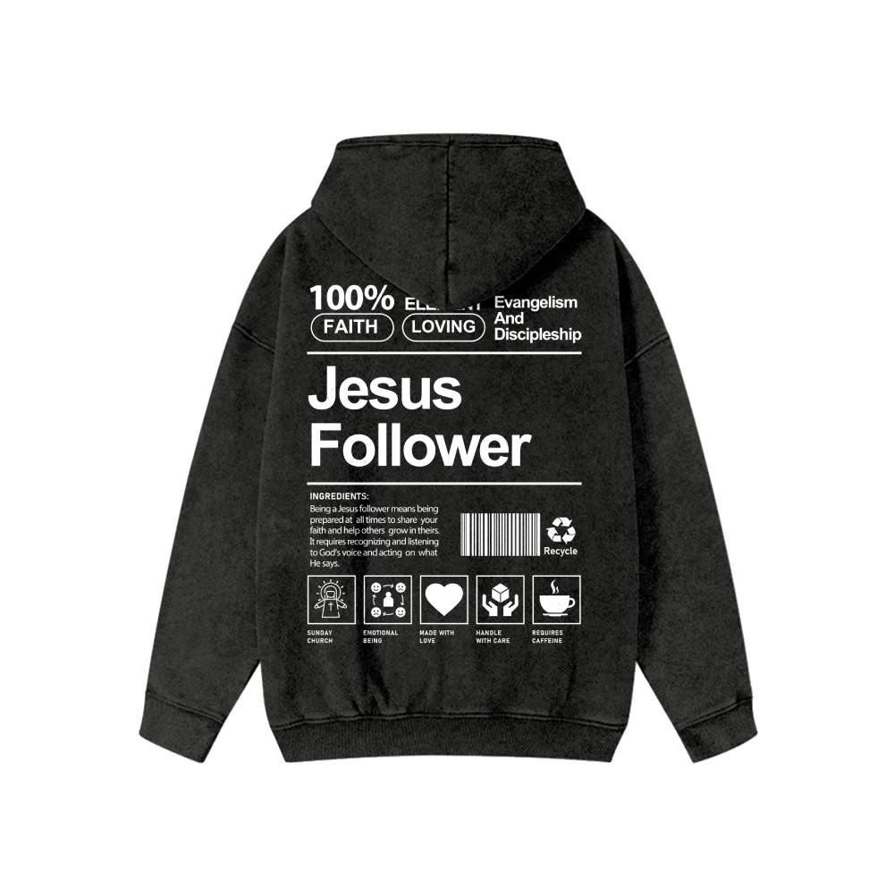 Jesus Follower Unisex Washed Cotton Zipper Hooded Sweatshirt
