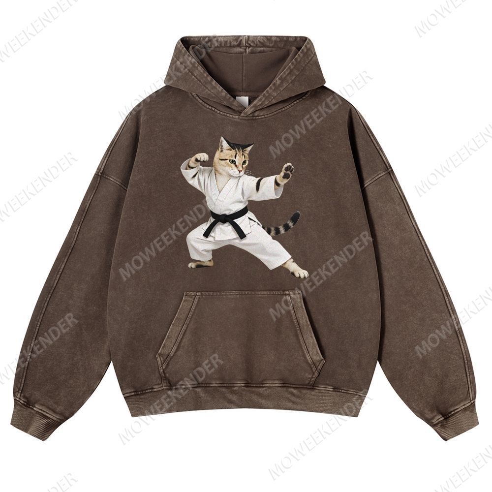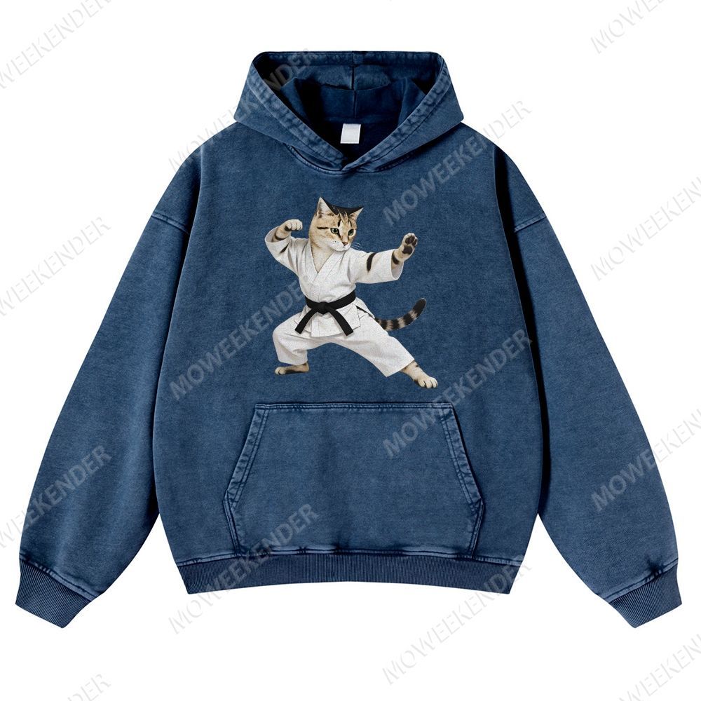 Jiu-Jitsu Kung Fu Cat Unisex Fit Vintage Washed Hoodie