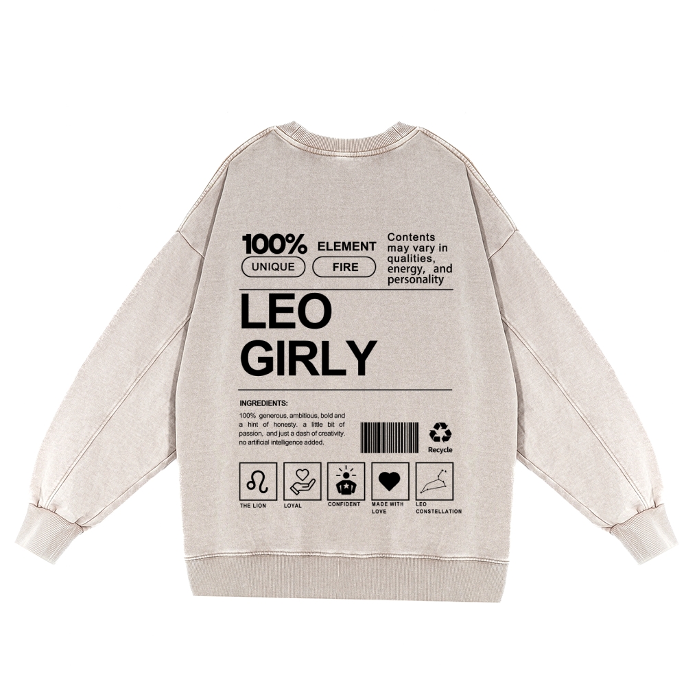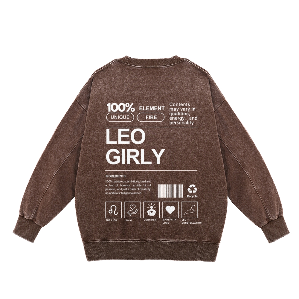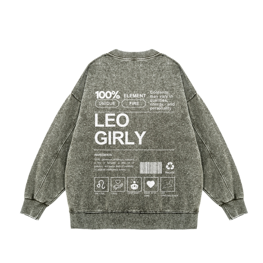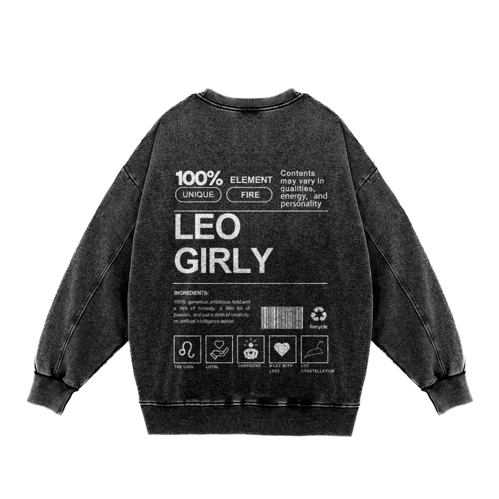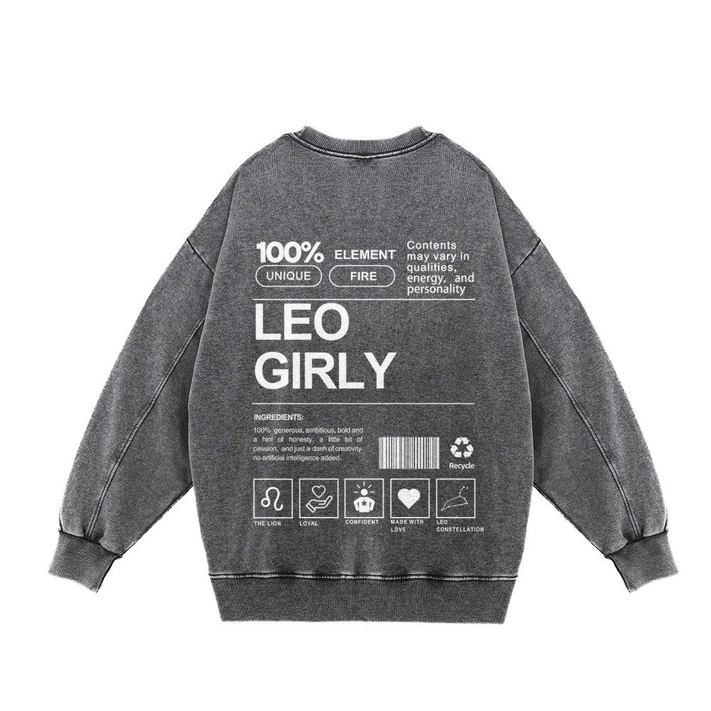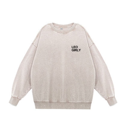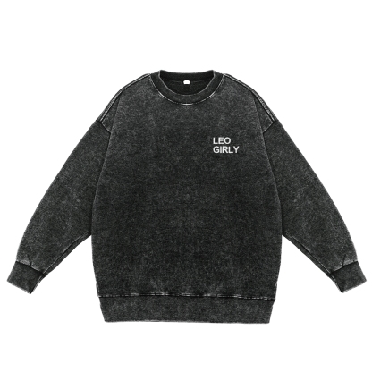 Leo Girly Unisex Washed Crewneck Sweatshirt