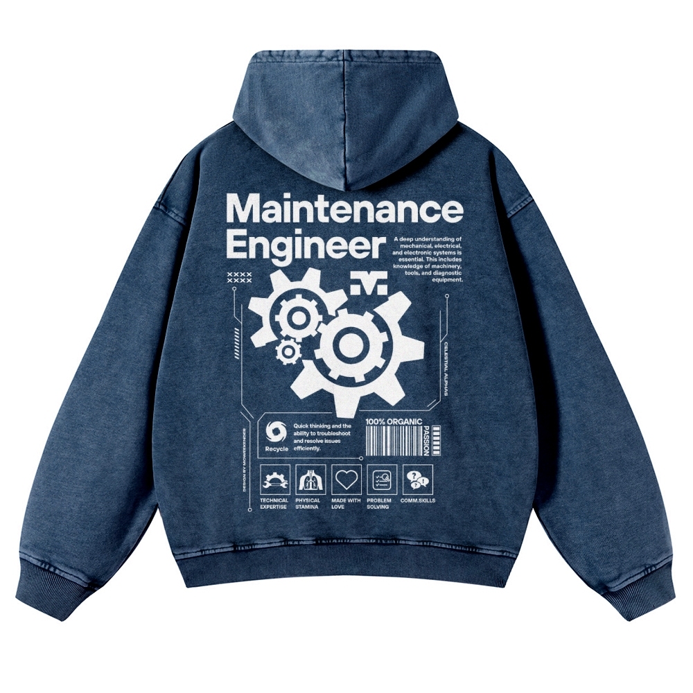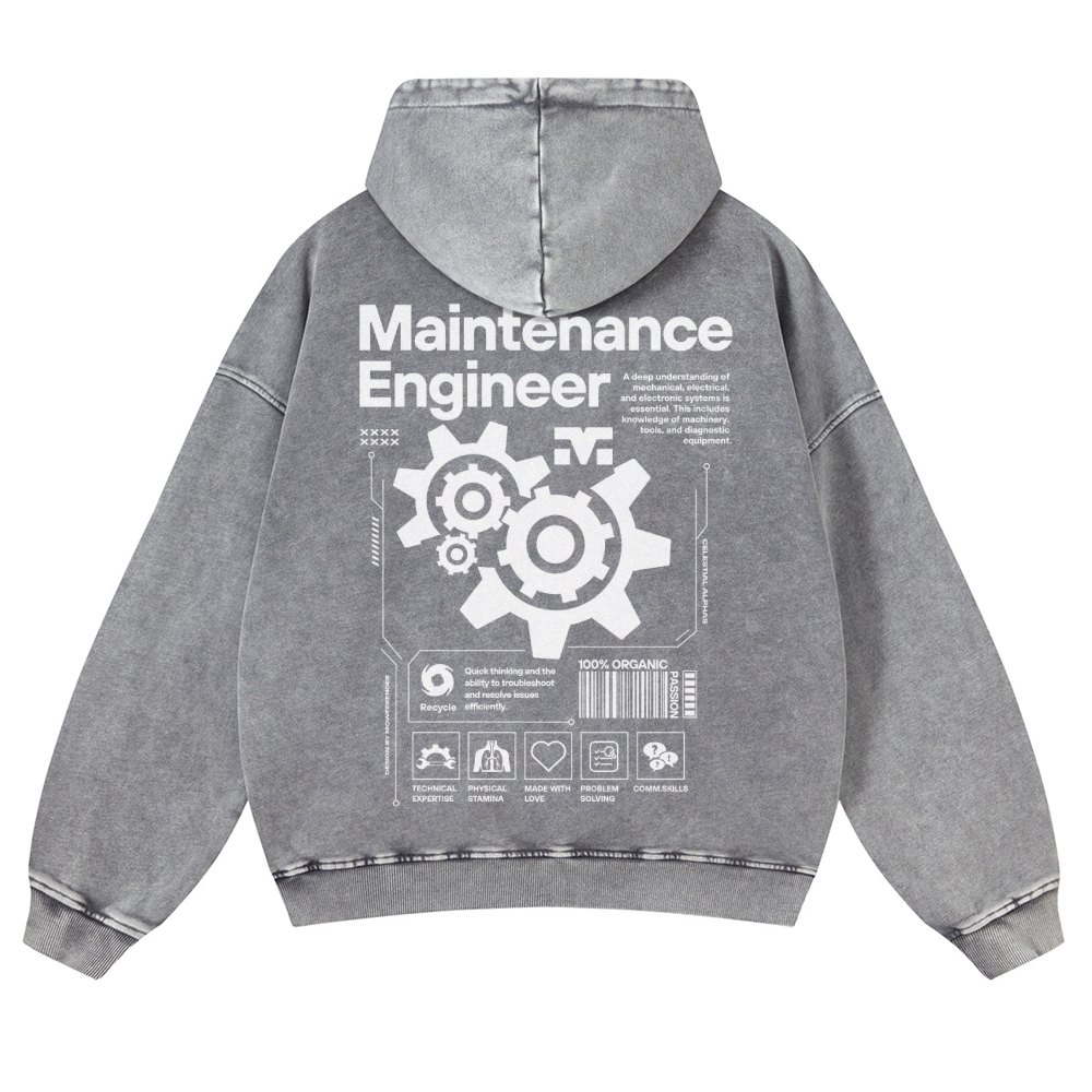 Maintenance Engineer Unisex Fit Vintage Washed Hoodie