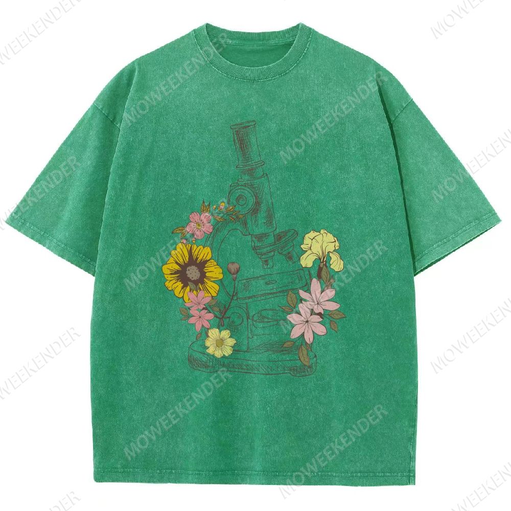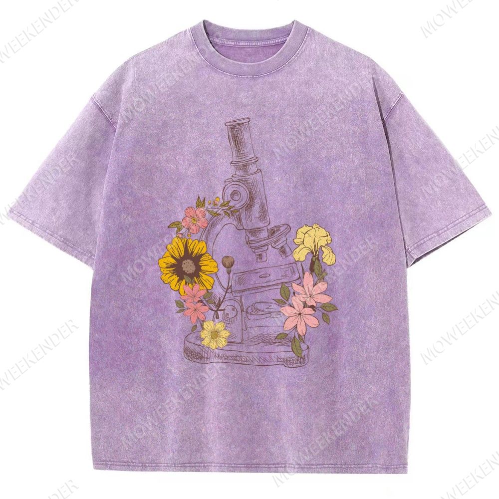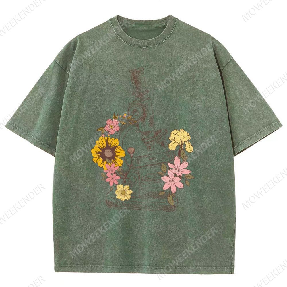 Microscope Scientist Print Unisex Fit Washed T-Shirt