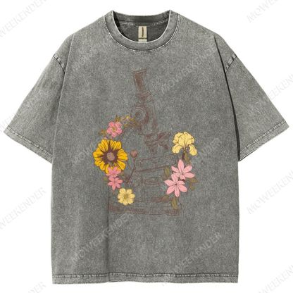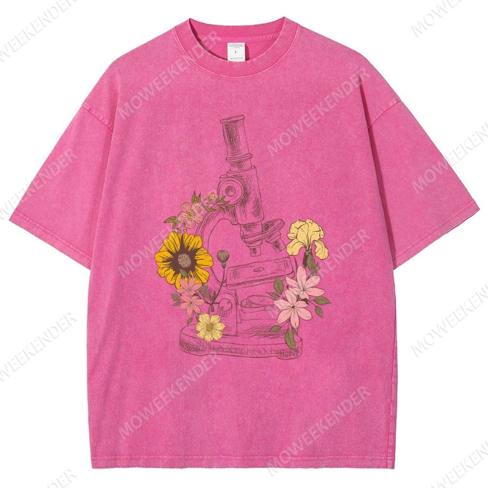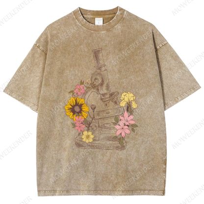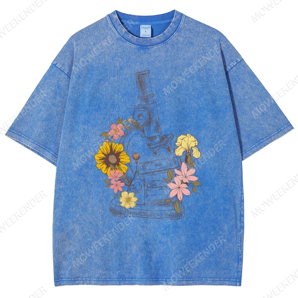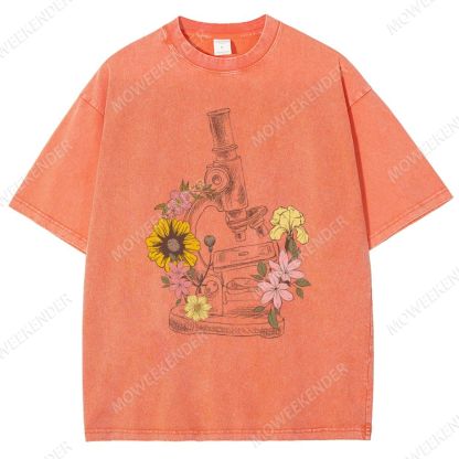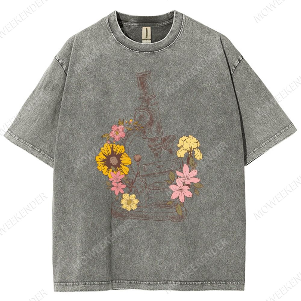Microscope Scientist Print Unisex Fit Washed T-Shirt