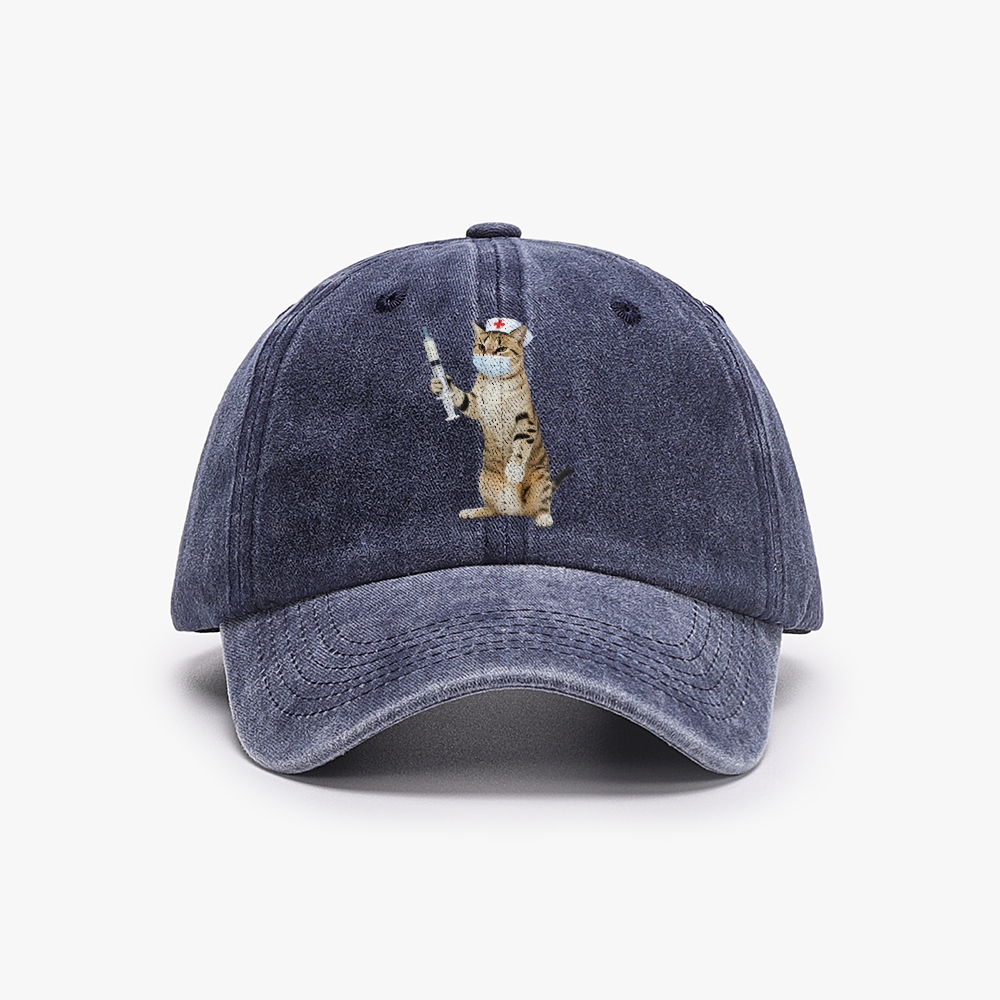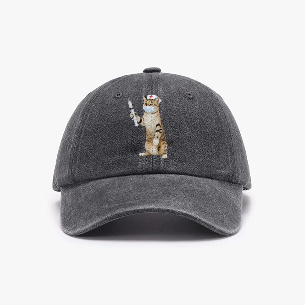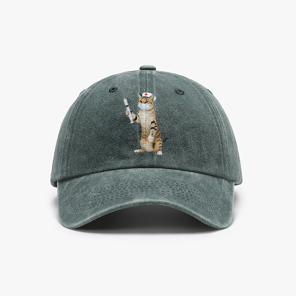 Nurse Cat Unisex Washed Vintage Baseball Cap