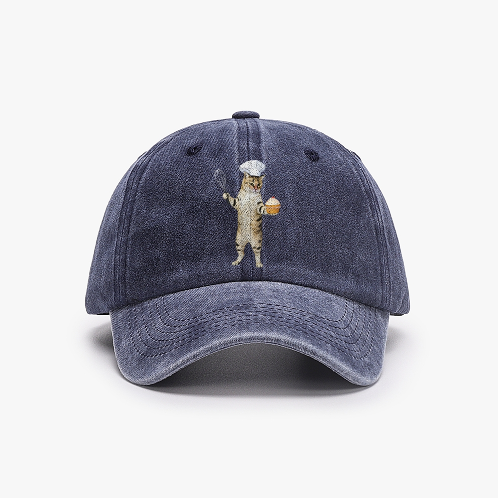 Pastry Chef Cat Unisex Washed Vintage Baseball Cap