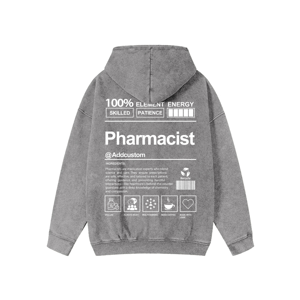 Pharmacist Unisex Washed Cotton Zipper Hooded Sweatshirt