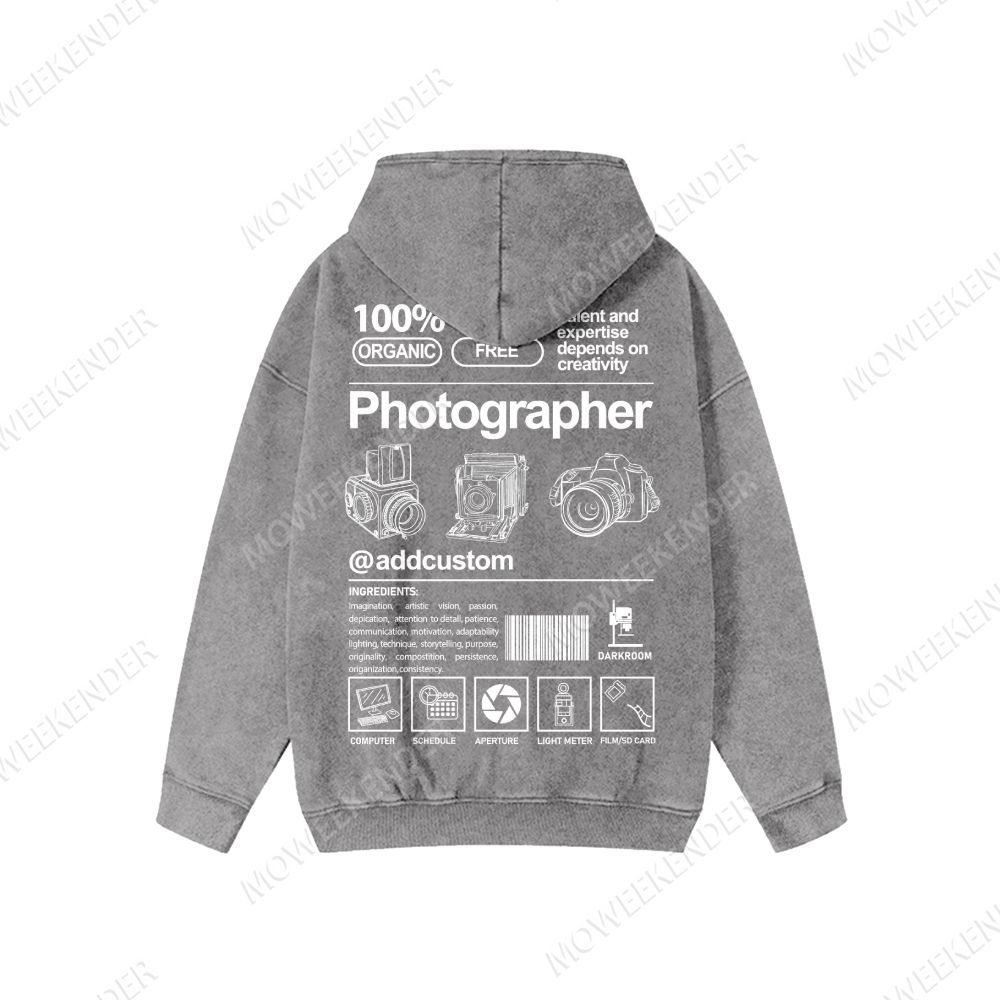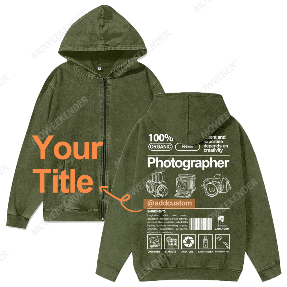 Photographer Custom Washed Cotton Zipper Hooded Sweatshirt